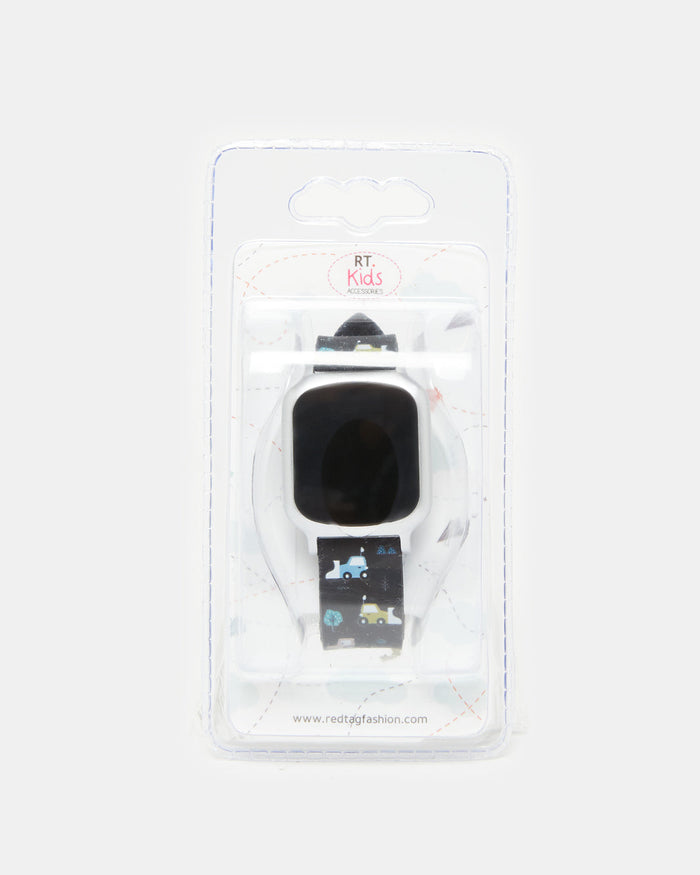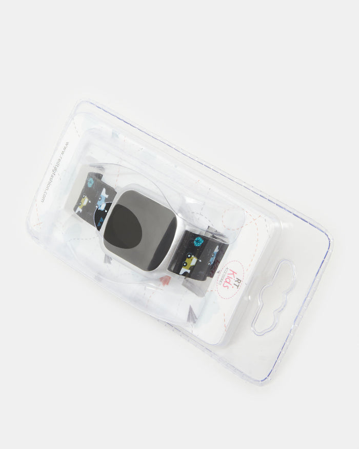 ساعة رقمية مطبوعة باللون الأسود للأولاد