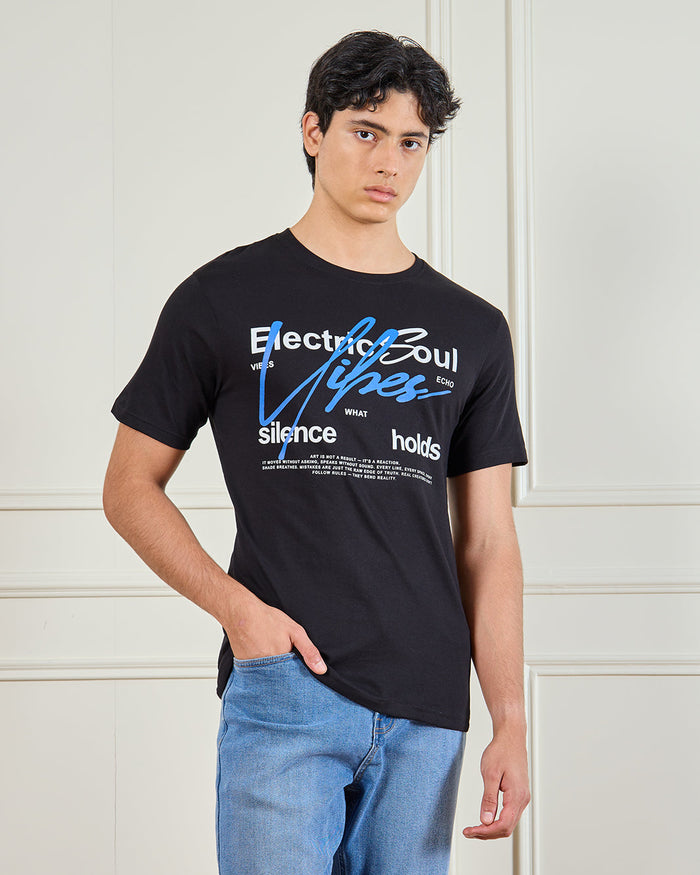تيشيرت رجالي مطبوع، مثالي للارتداء اليومي. مصنوع من قماش ناعم وقابل للتهوية لراحة قصوى. يتميز بتصميم رقبة دائرية تقليدي يتناسب مع أي إطلالة كاجوال.