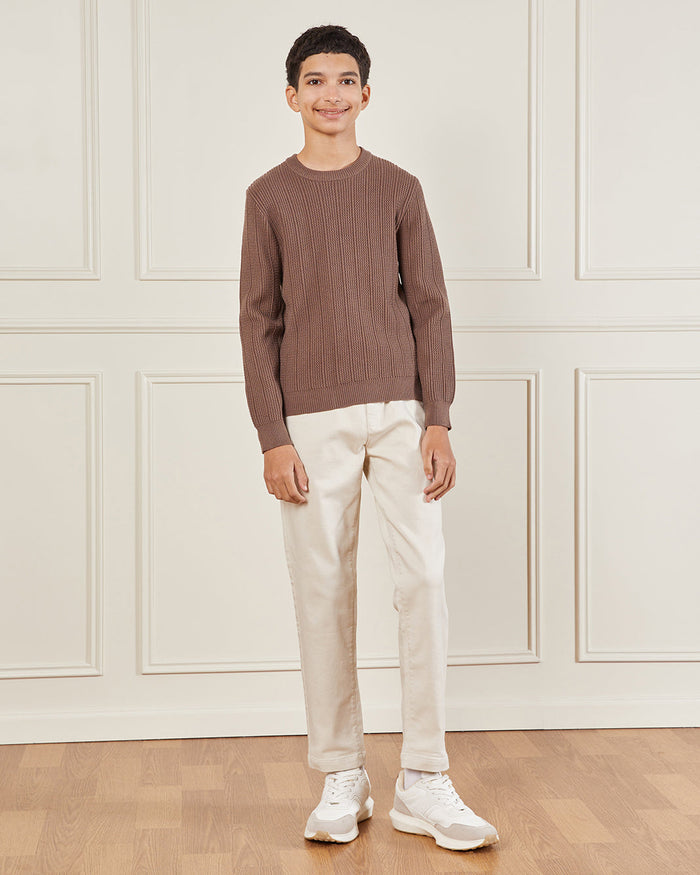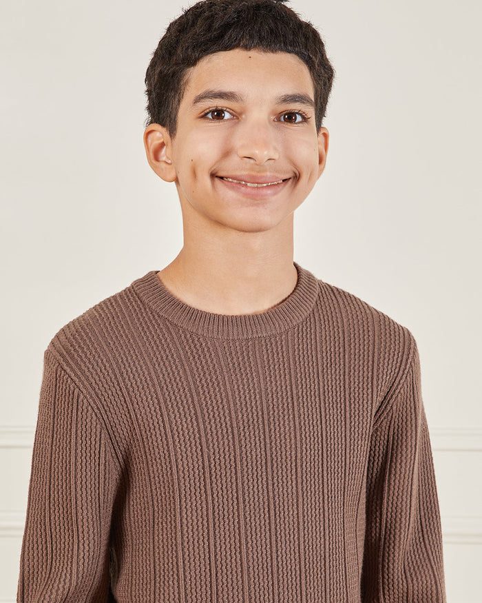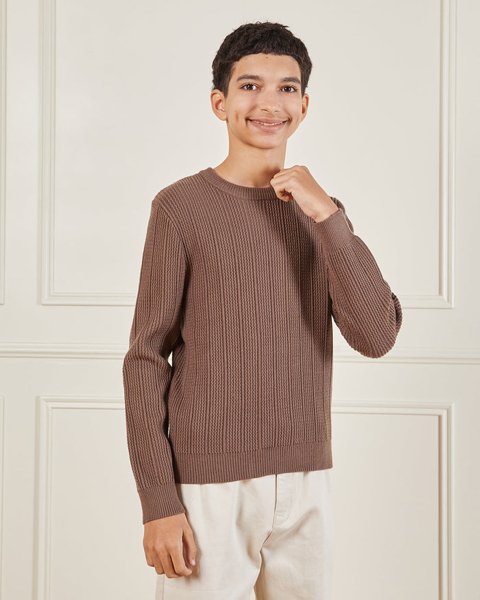 سترة بملمس بارز باللون البني للأولاد الكبار