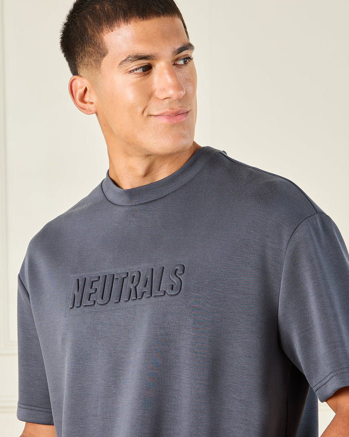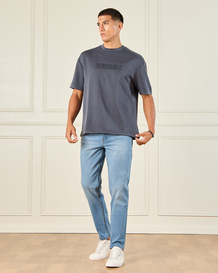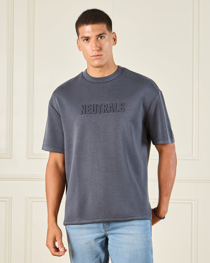 تيشيرت برقبة دائرية باللون الرمادي الداكن للرجال