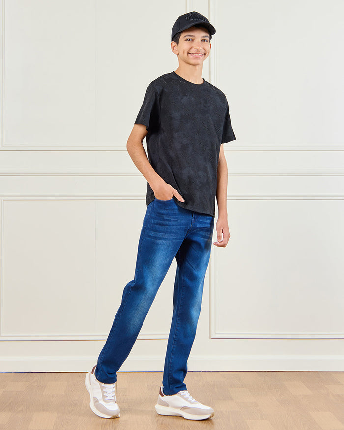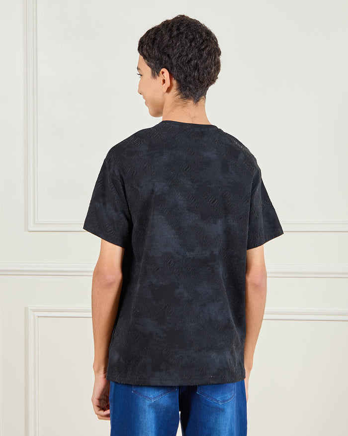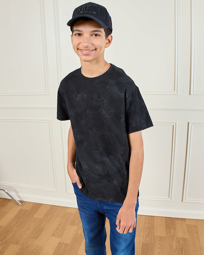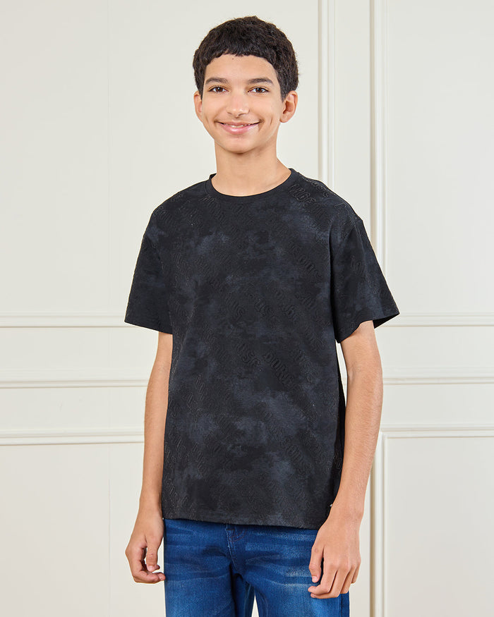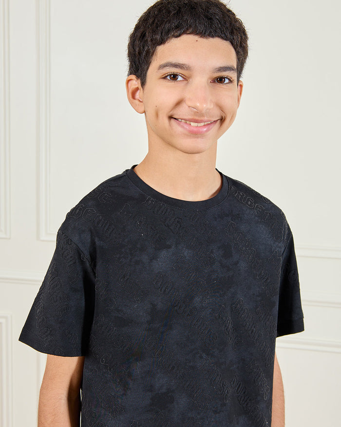تيشيرت مطبوع باللون الرمادي الداكن للأولاد الكبار