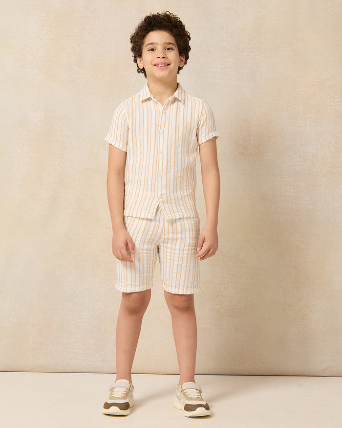 شورت دوبي مخطط باللون الكريمي للأولاد الصغار