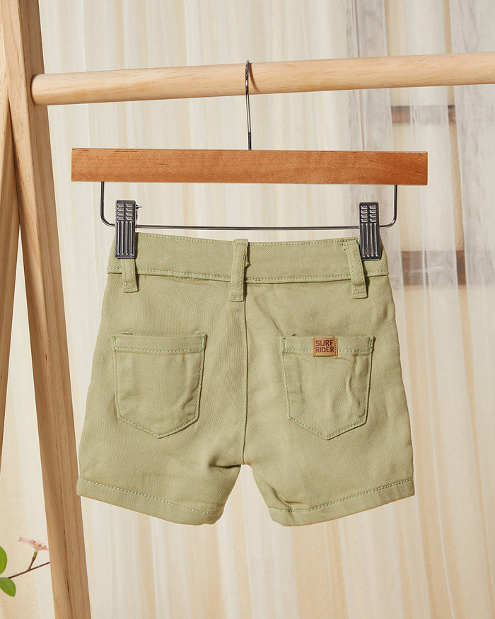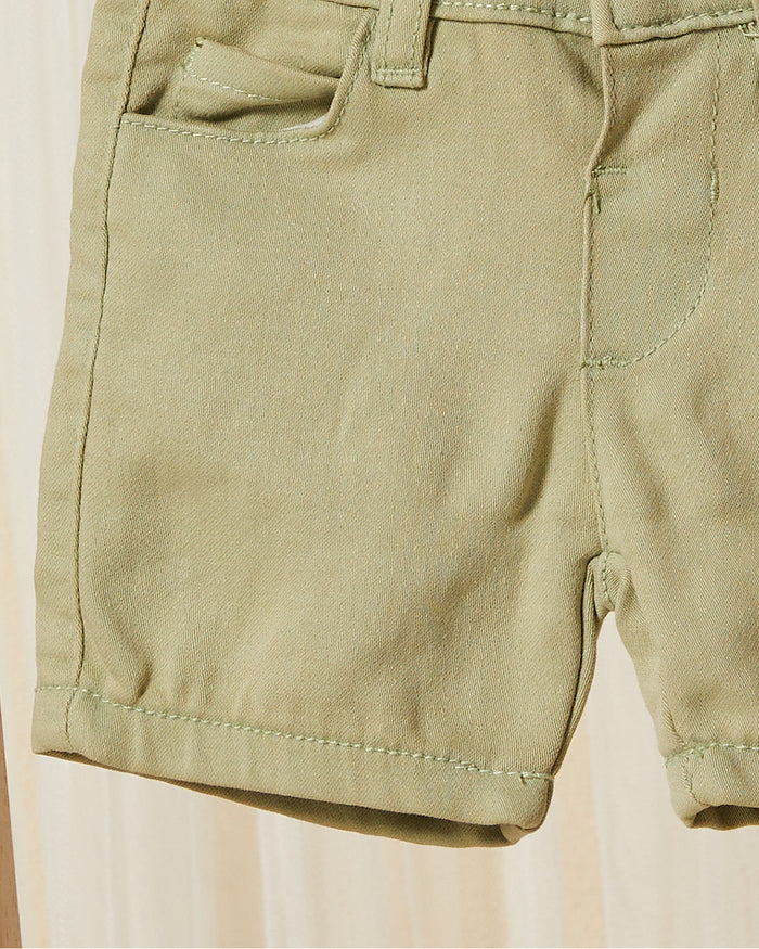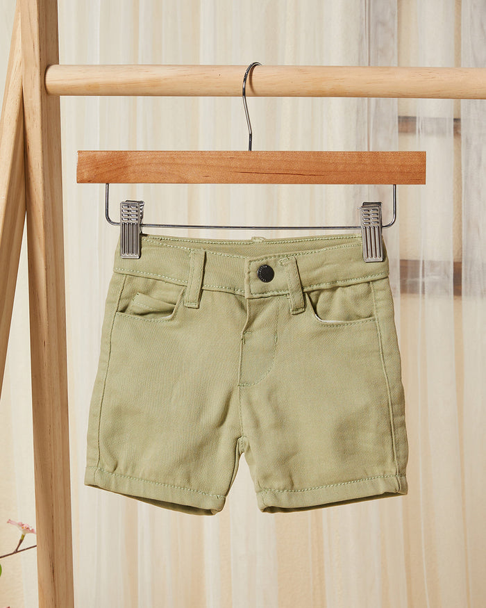 شورت جينز سادة باللون الزيتي للأولاد الرضع