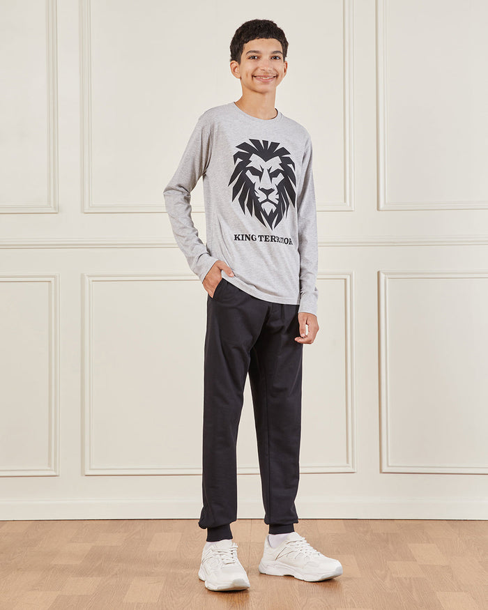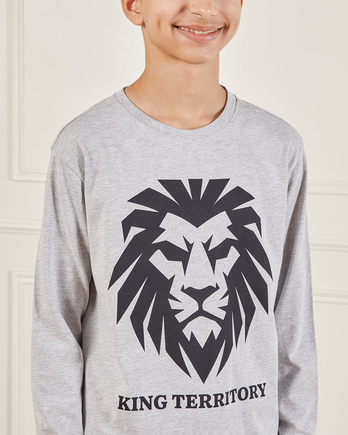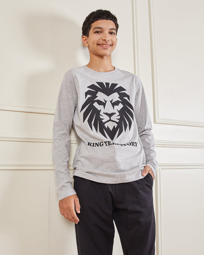يتميز هذا التيشيرت المطبع بتصميم بسيط ومرِح، مما يجعله الخيار المثالي للأنشطة اليومية أو وقت اللعب.