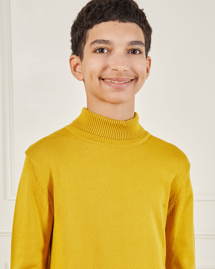 سترة محبوكة باللون الأصفر الداكن للأولاد الكبار