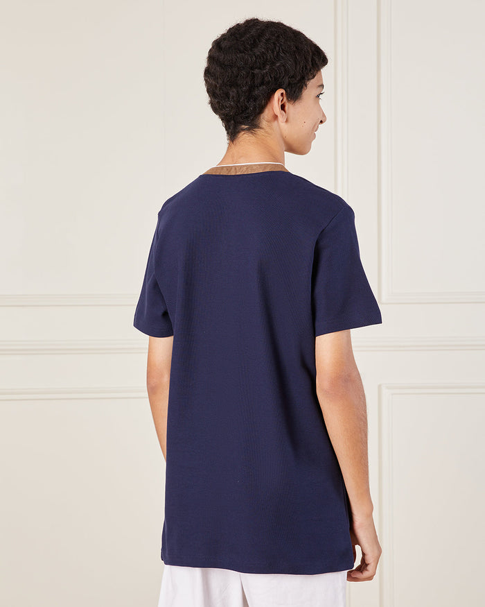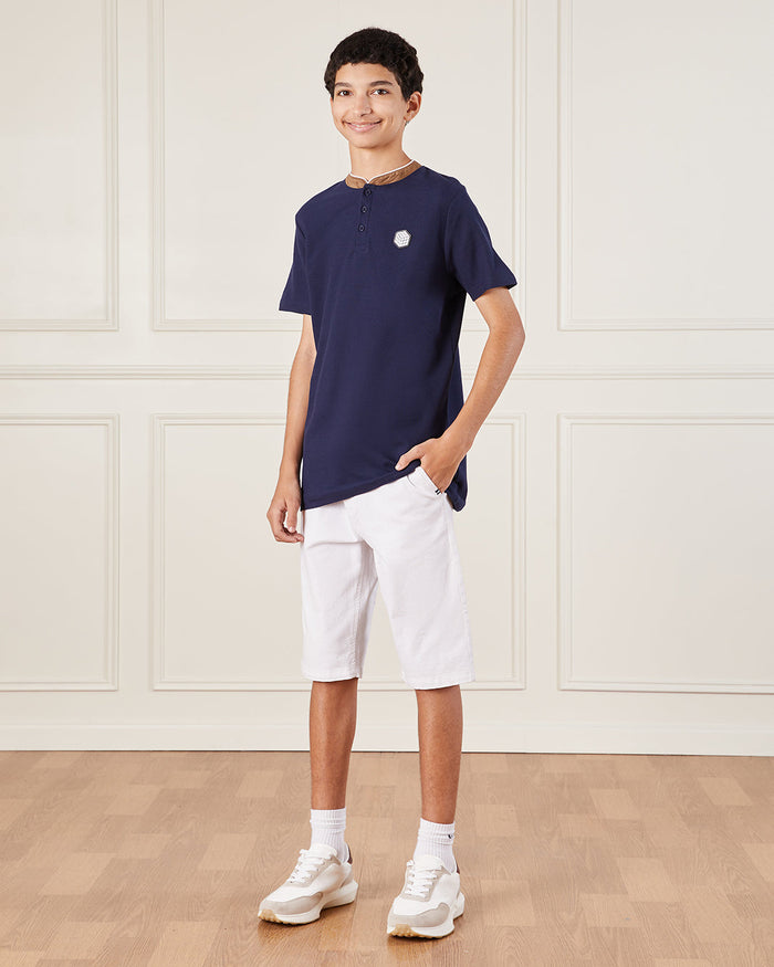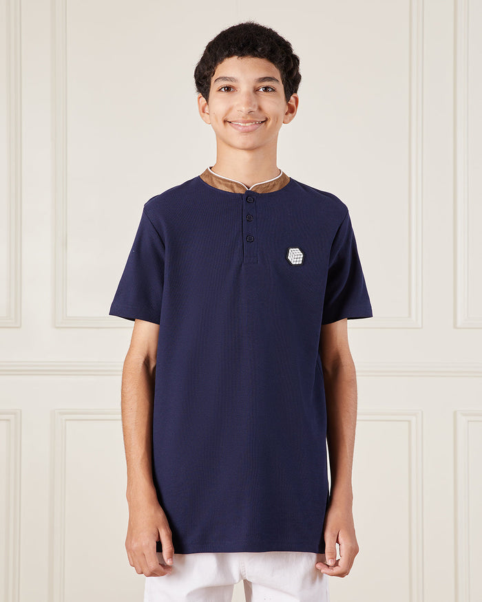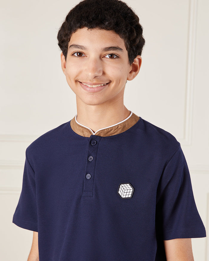 قميص بولو بياقة ماندارين باللون الكحلي للأولاد الكبار