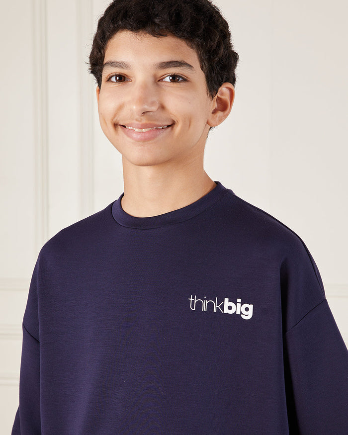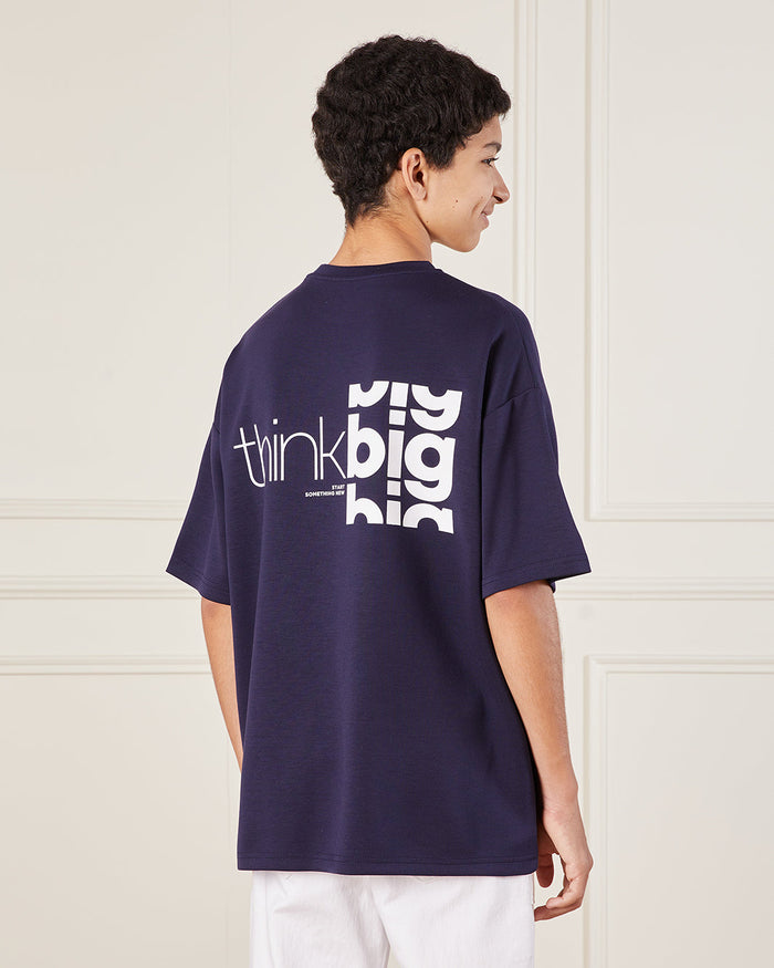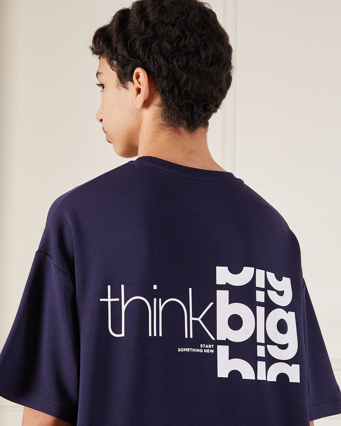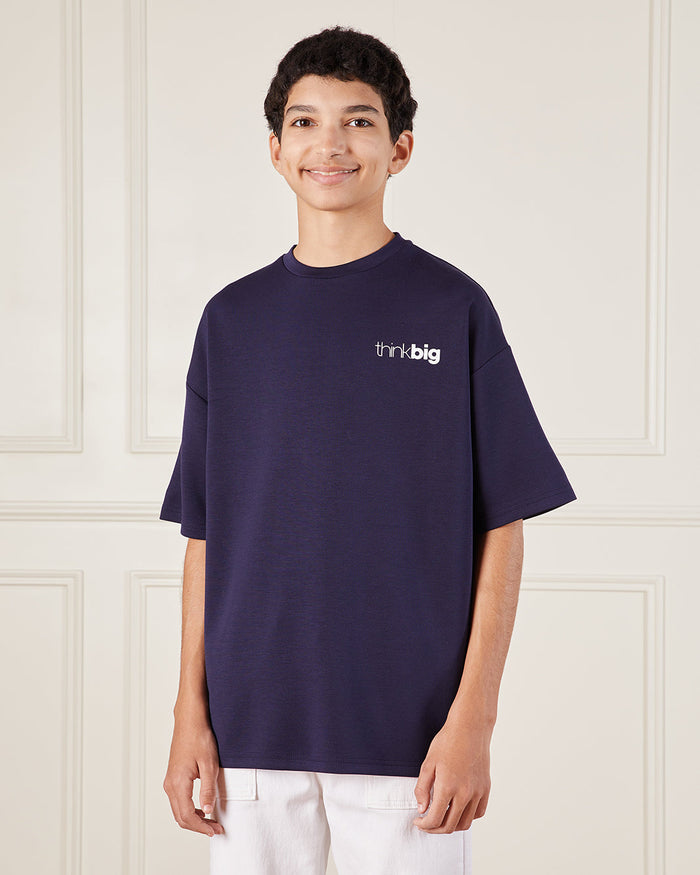تيشيرت مطبوع باللون الكحلي للأولاد الكبار