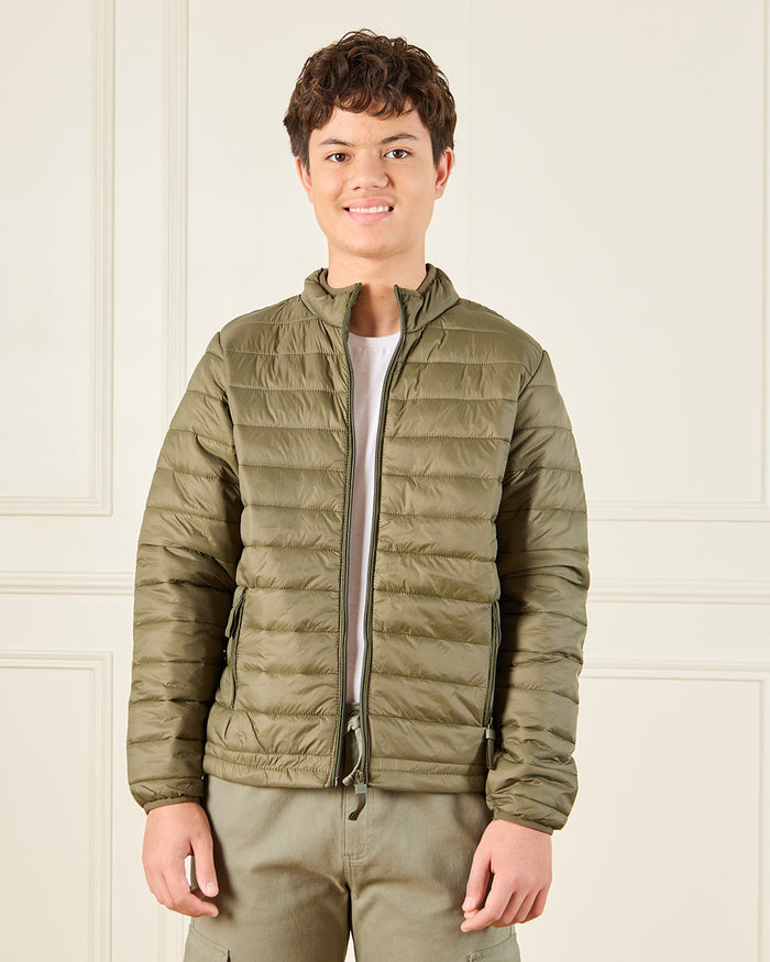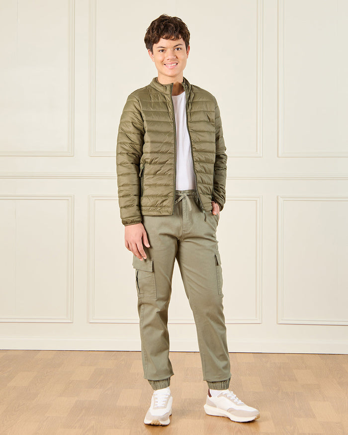 جاكيت مبطن باللون الزيتي للأولاد لاكبار