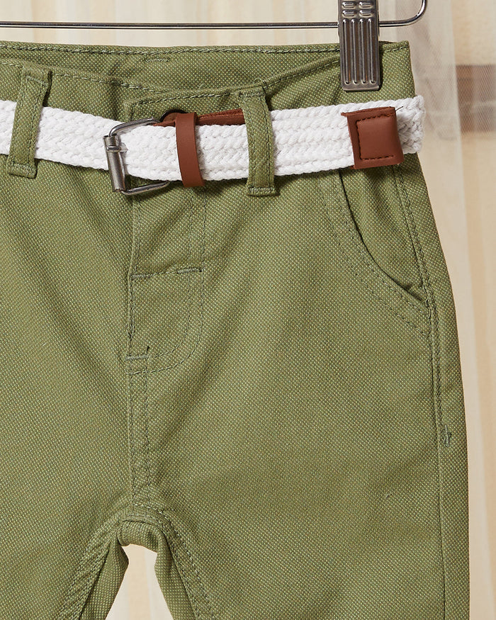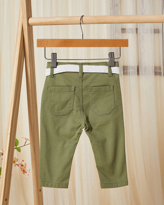 بنطلون بحزام باللون الزيتي للأولاد الرضع