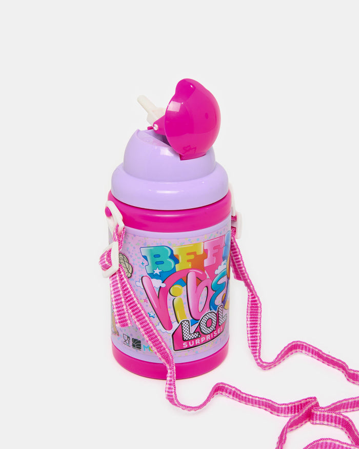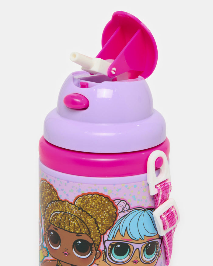 زجاجة ماء بطبعة لول سربرايز باللون الوردي للبنات