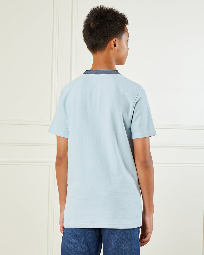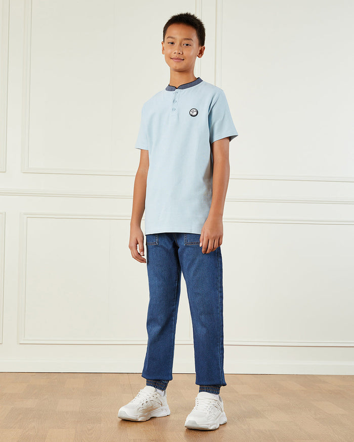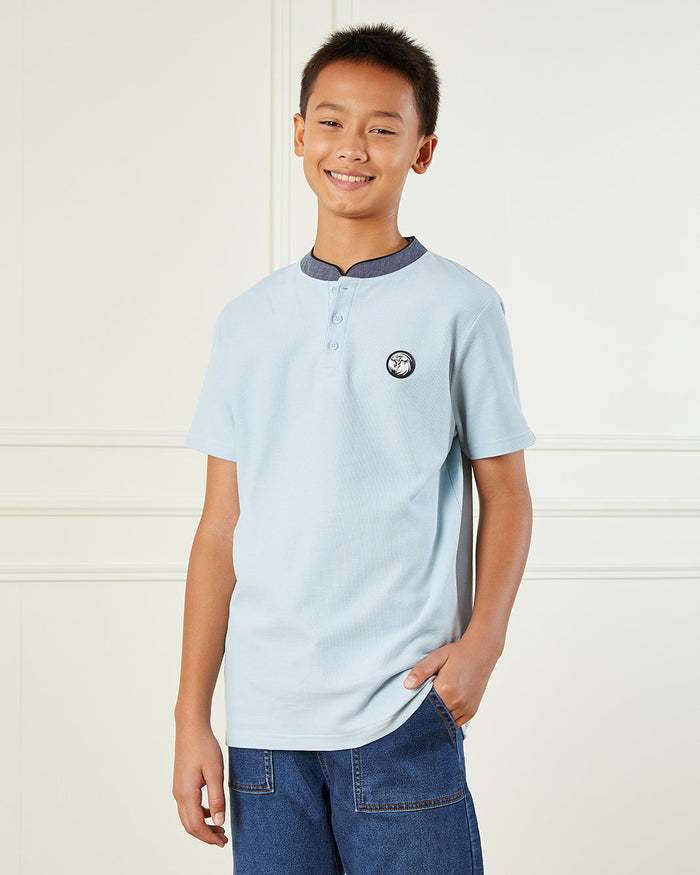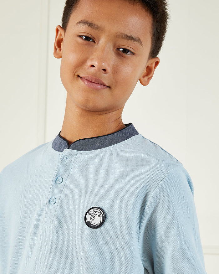 قميص بولو بياقة ماندارين باللون الأزرق للأولاد الكبار