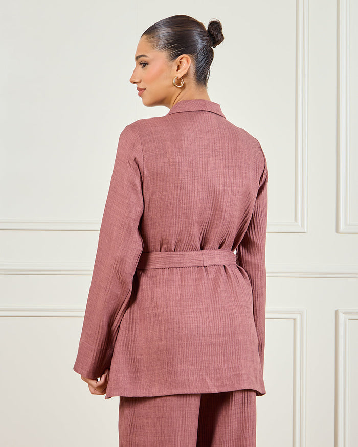 كيمونو بملمس بارز باللون البني الفاتح للنساء