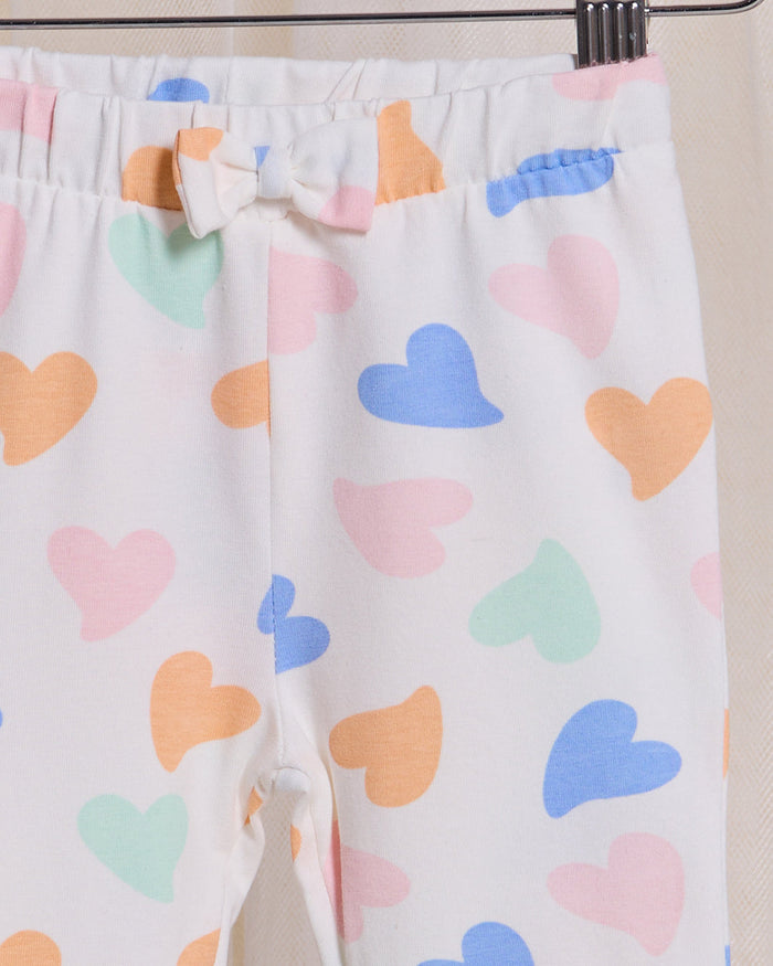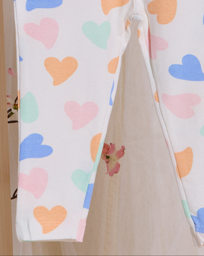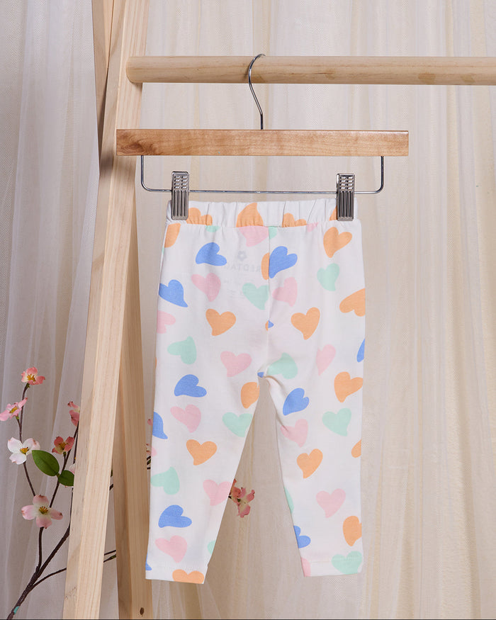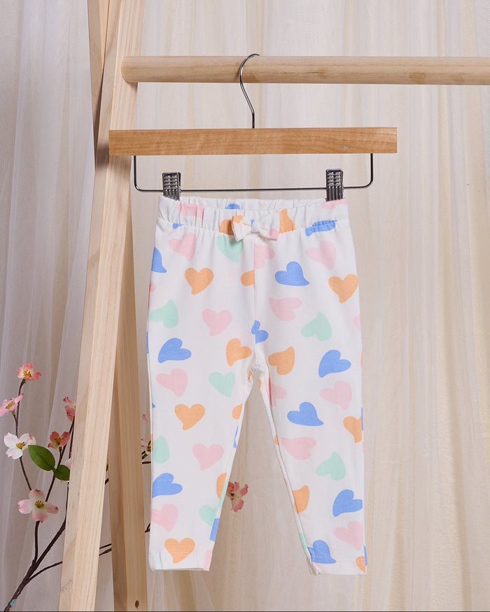 ليغينغز بطبعة قلب باللون الأبيض للبنات الرضّع