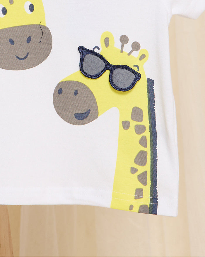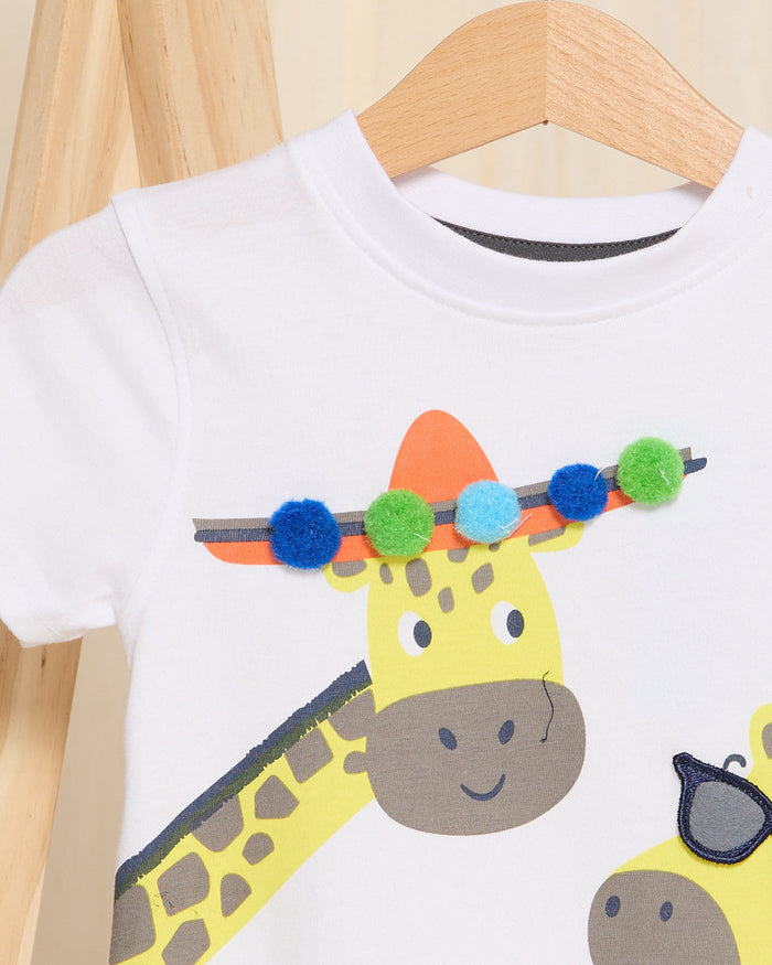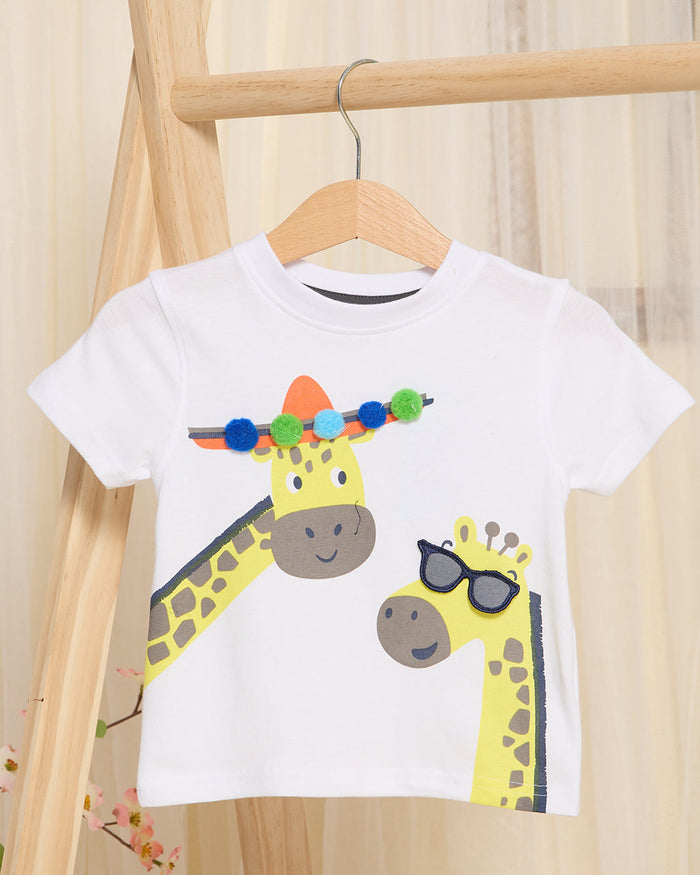 تيشيرت مطبوع باللون الأبيض للأولاد الرضّع