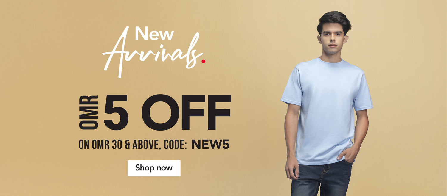 Extra 5 OMR OFF on New Arrivals, Code: NEW5