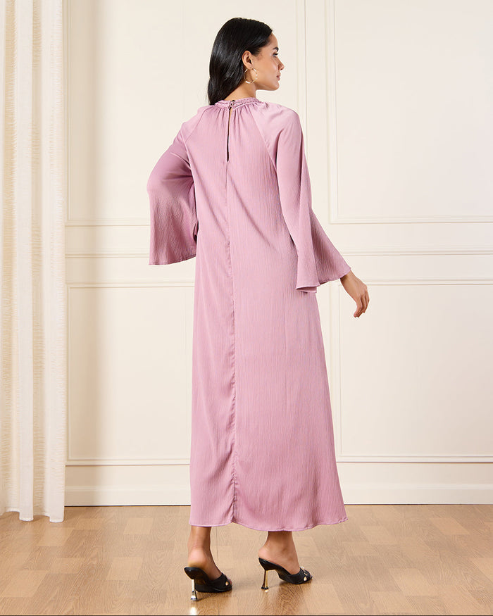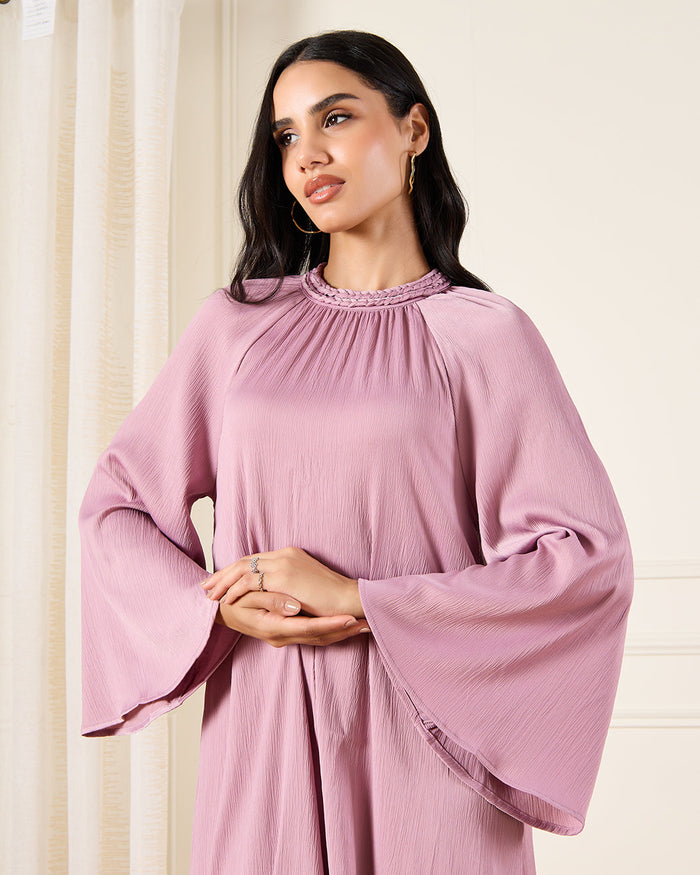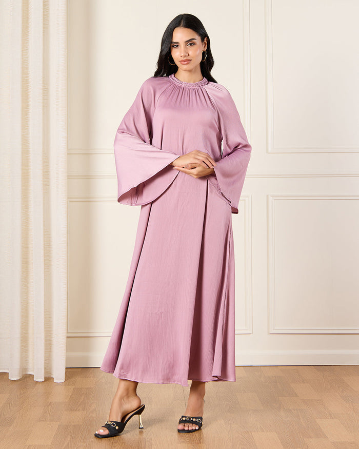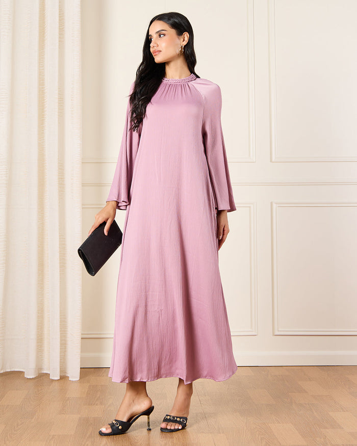 Women Mauve Braded Neck Detailed Kaftan Dress