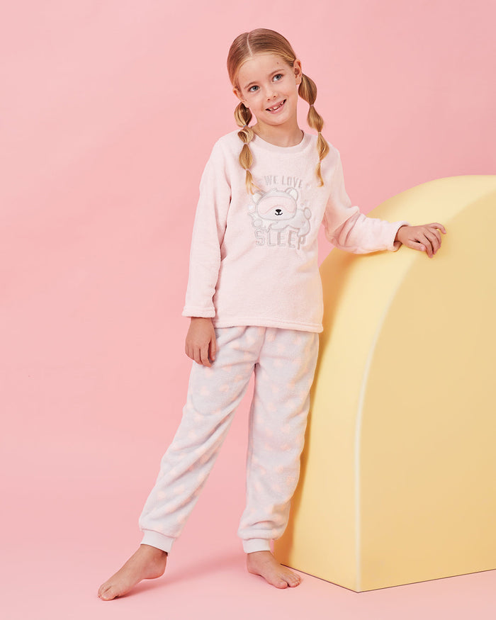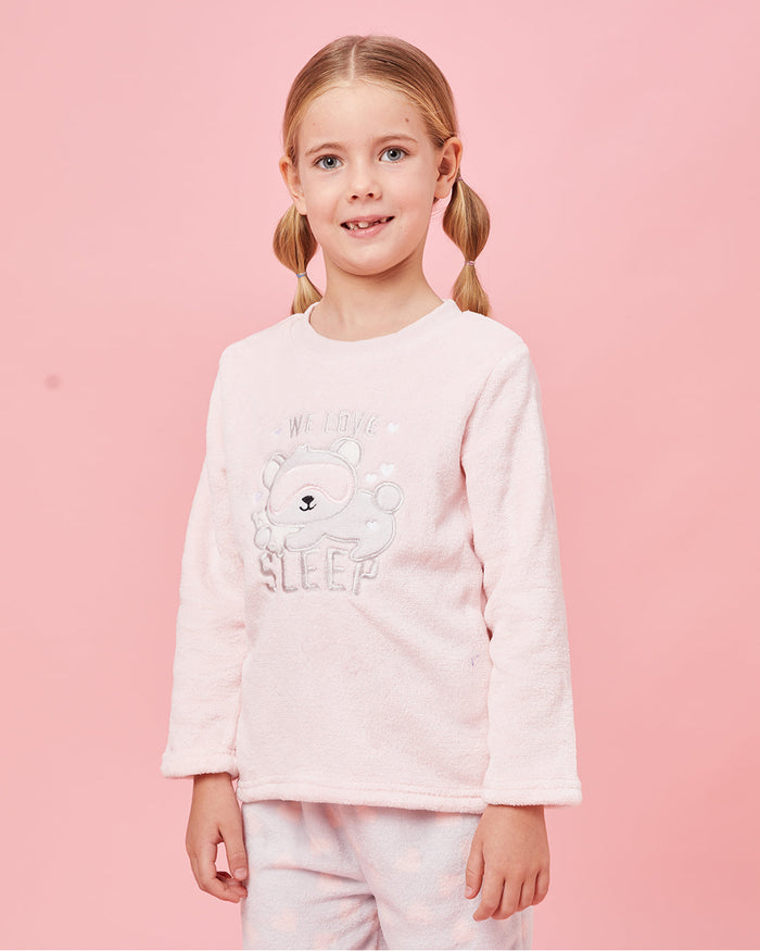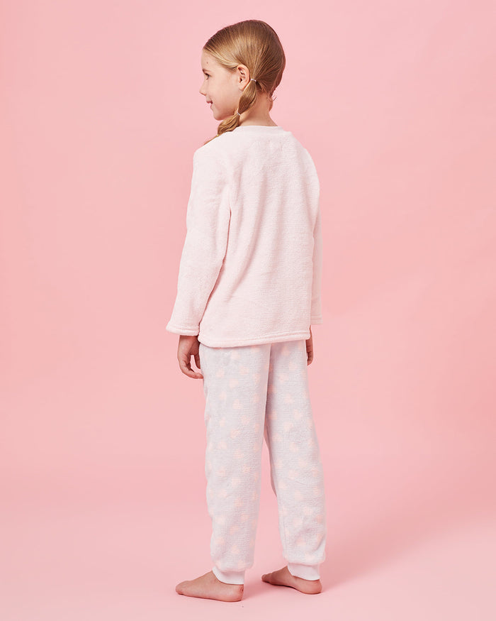 Girls Pink Embossed Pyjama Set (2 Piece)