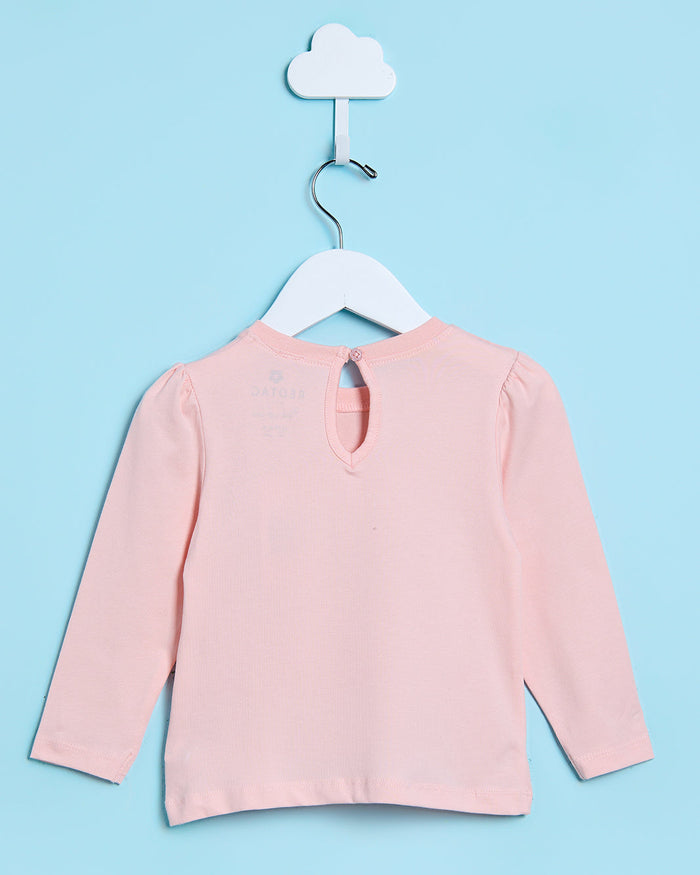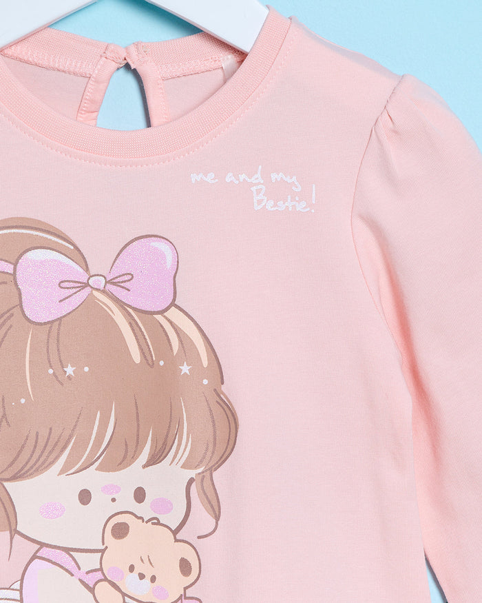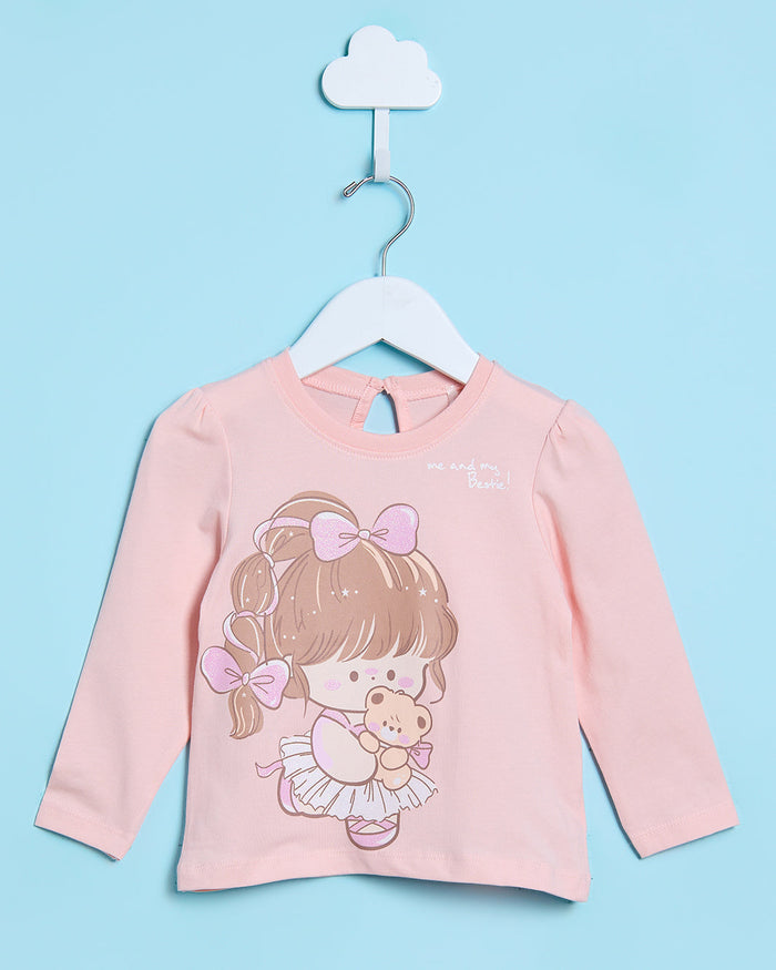 Infant Girls Peach Cute Girl Placement Print T-Shirt