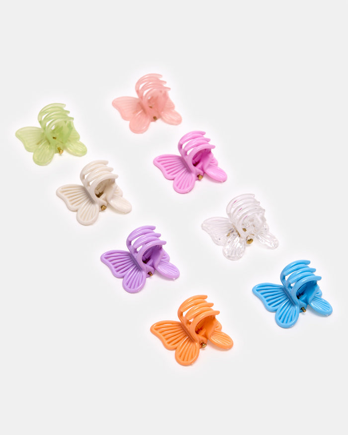 A colourful butterfly clip set that brightens up any hairstyle. Lightweight and easy to use, perfect for playful looks.