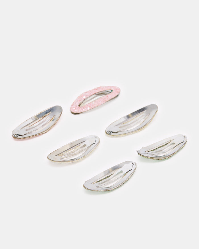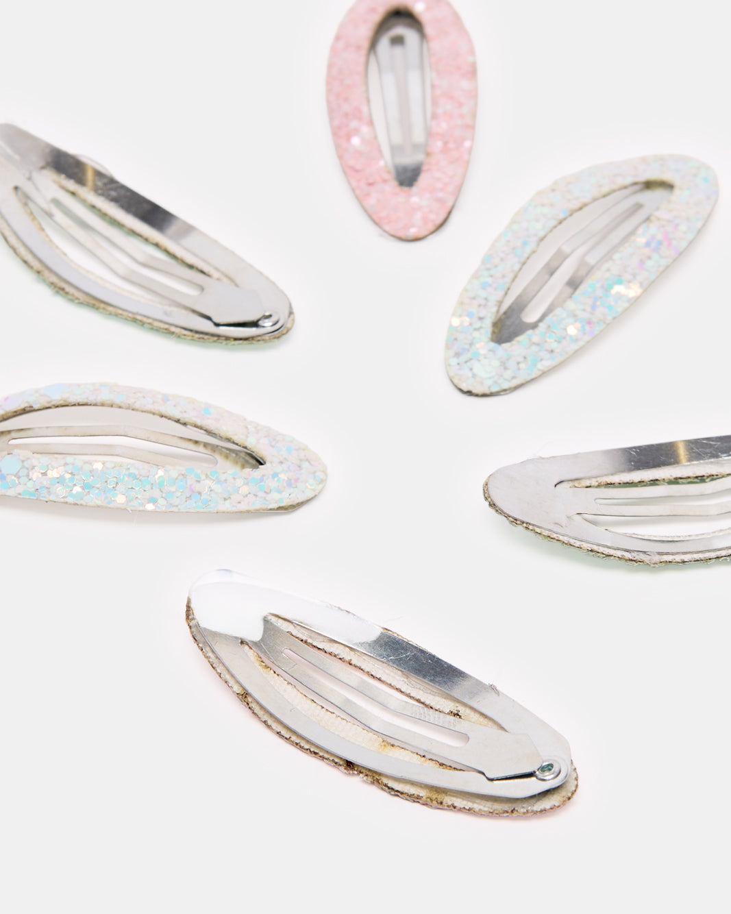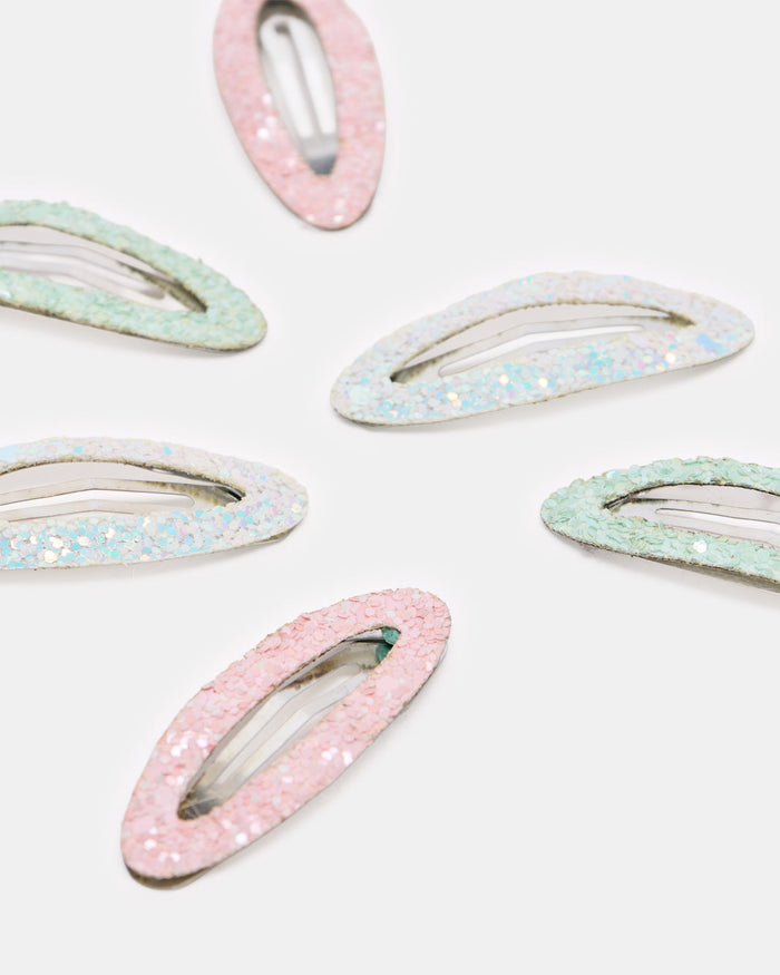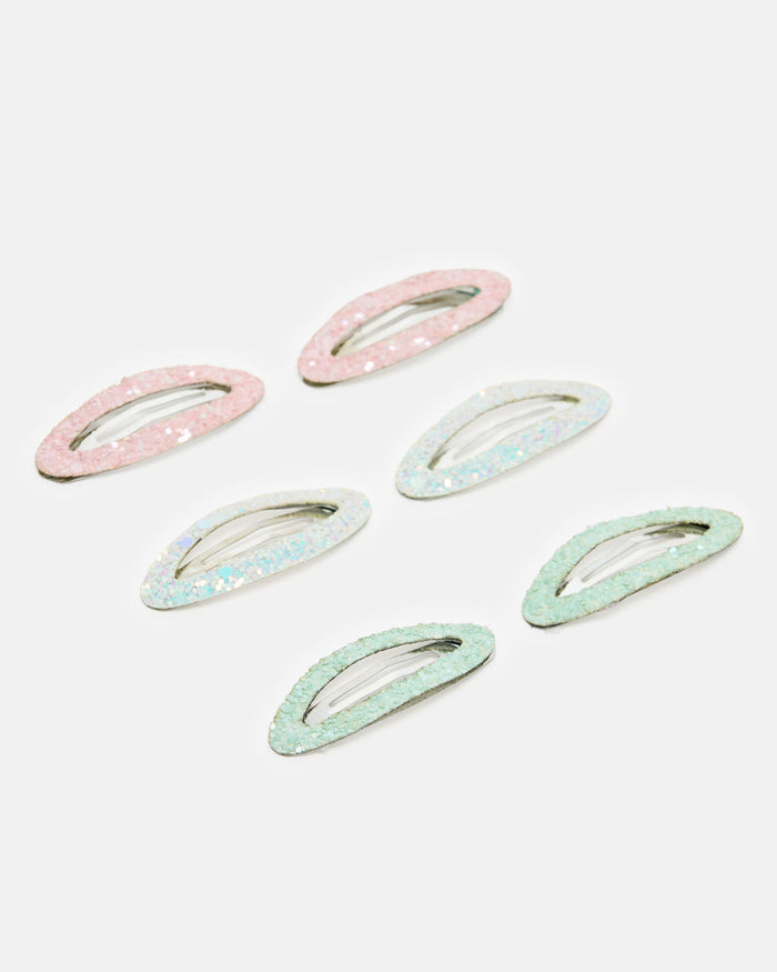 Brighten up her look with this set of six pastel glitter hair clips, lightweight and secure for all-day wear.