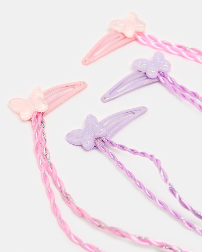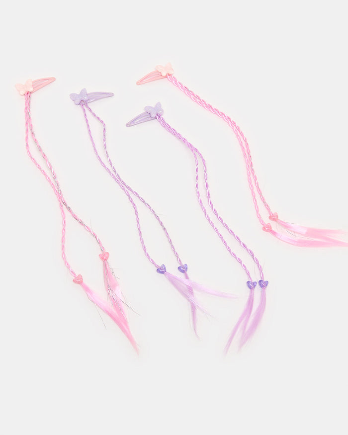 Girls Multicolour Hair Clip With Synthetic Hair(4 Piece)
