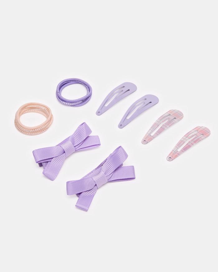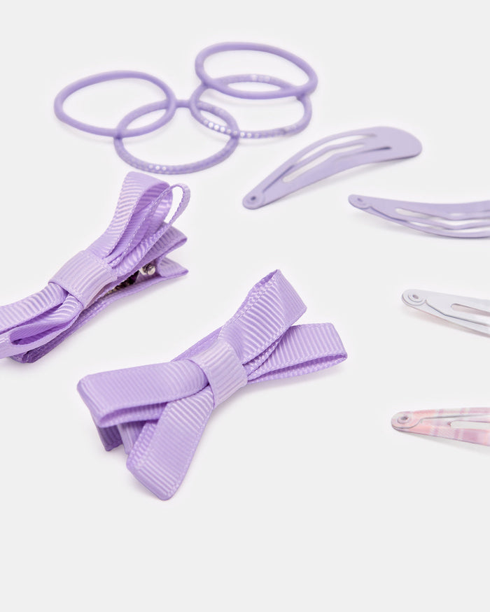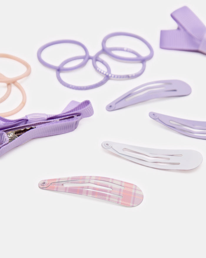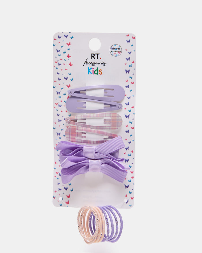 Girls Assorted Hair Clip And Hair Tie Set (14 Piece)