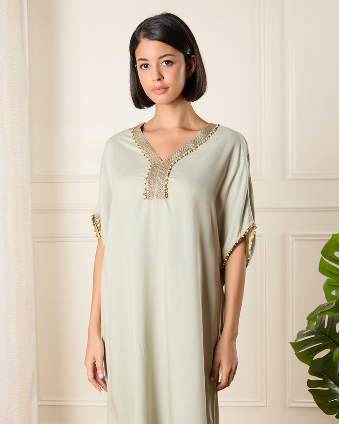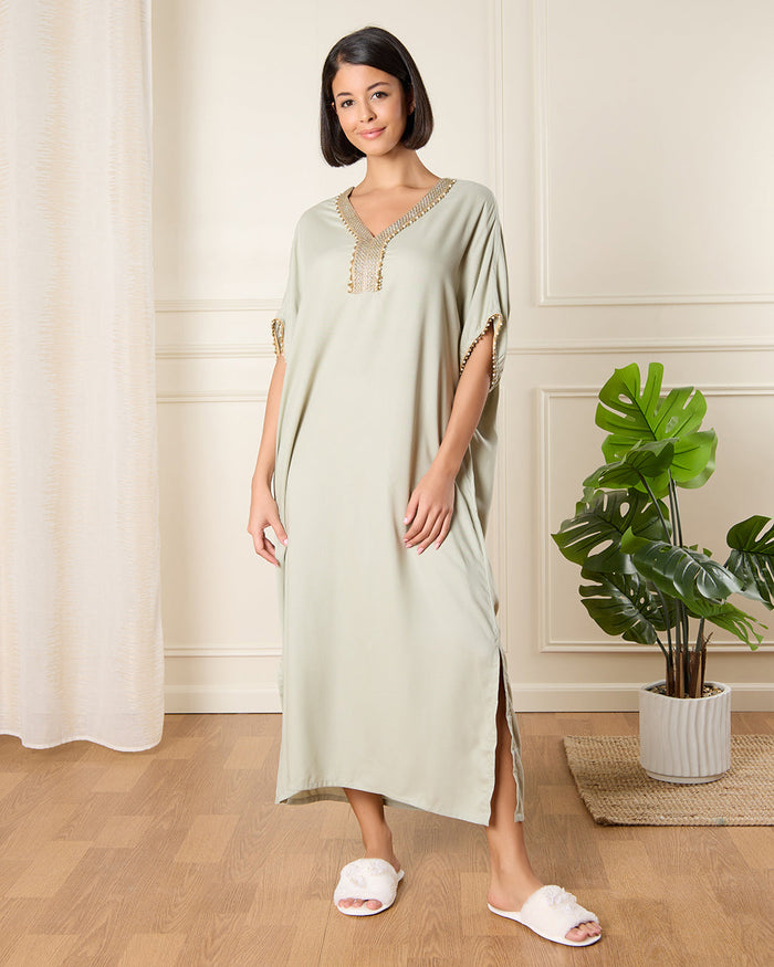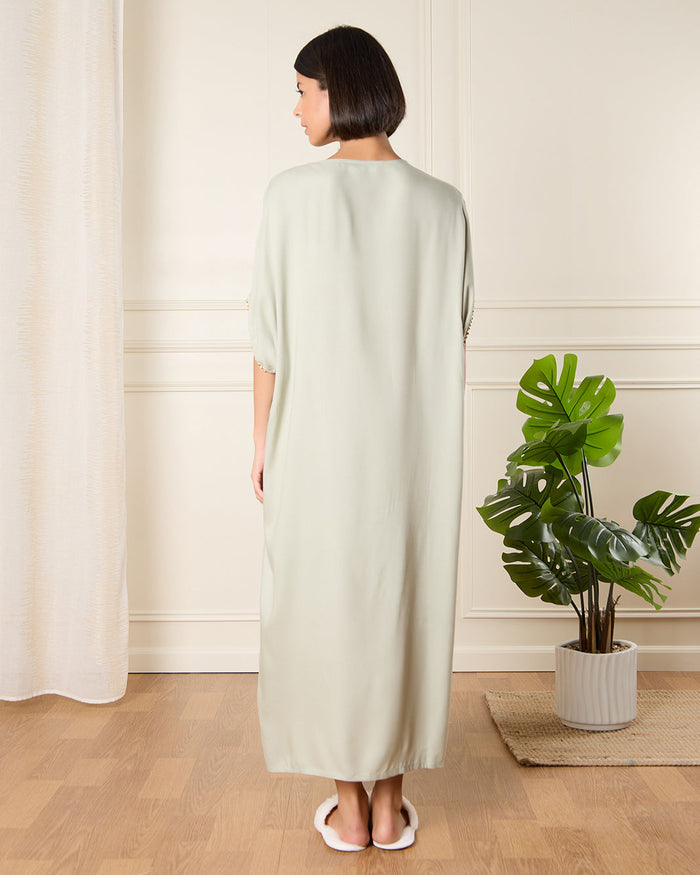 Women Beige Embellished Kaftan Nightgown