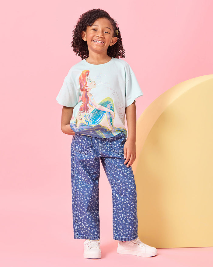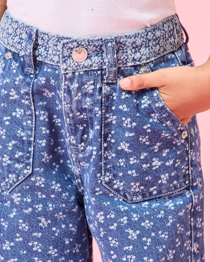 Girls Blue Denim Wide Leg Jeans