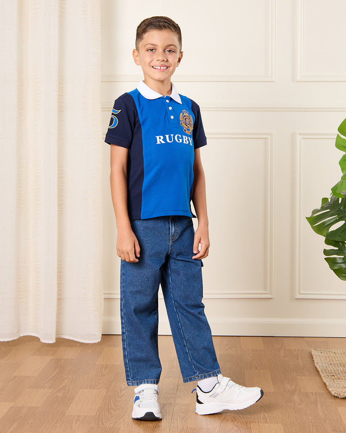 A classic polo t-shirt for boys that combines smart style with everyday comfort. Made from breathable fabric with a neat collar and buttons, it’s perfect for school, outings, or family gatherings.