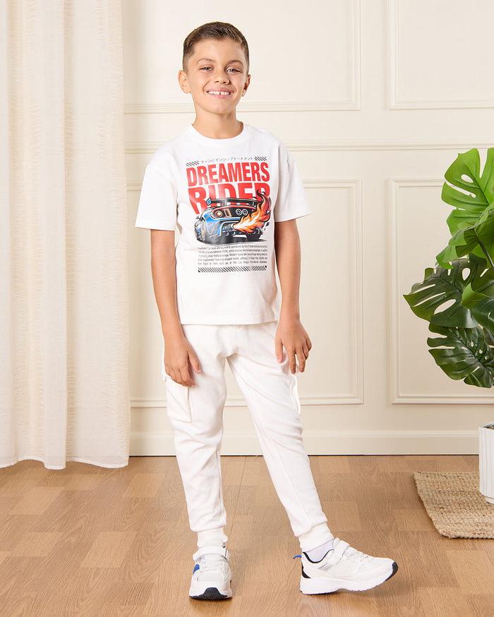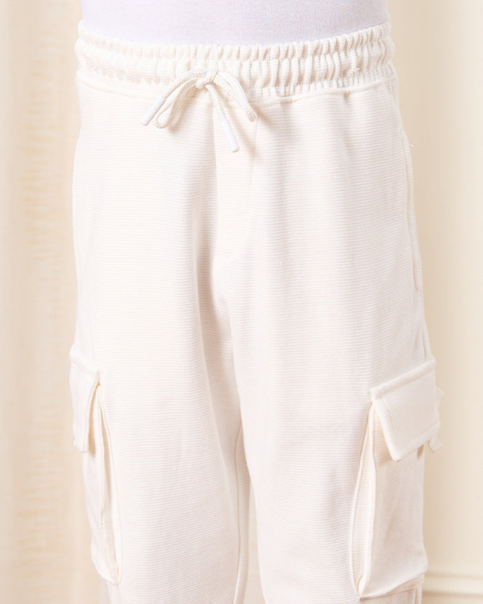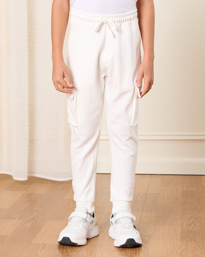Boys Cream Cargo Pocket Track Pants