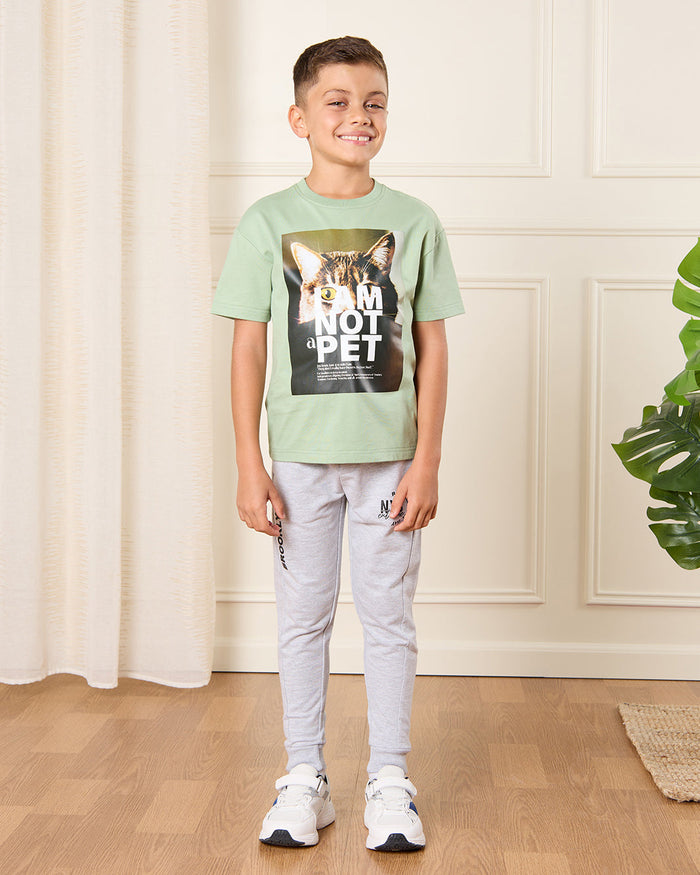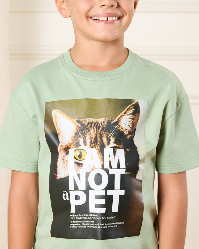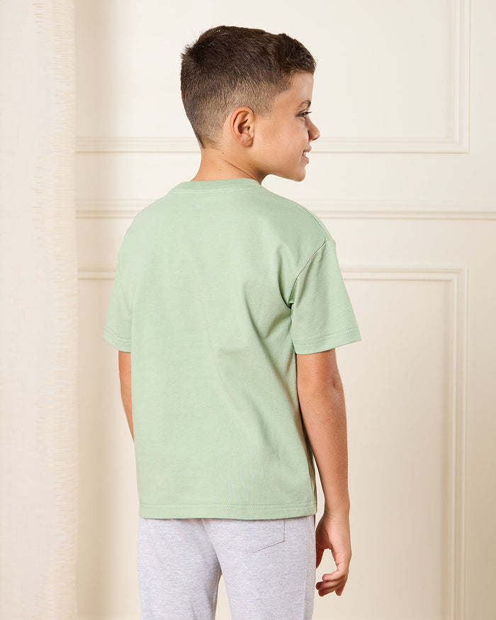Boys Green Printed Loose Fit T-Shirt