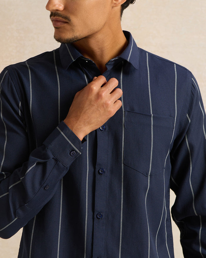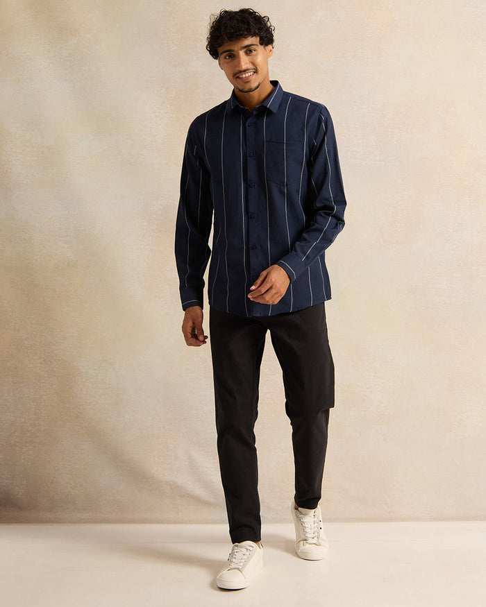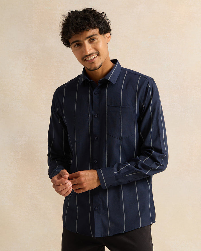 Effortlessly stylish! This casual shirt combines comfort and versatility, perfect for laid-back outings or relaxed everyday wear. Features long sleeves and striped pattern.