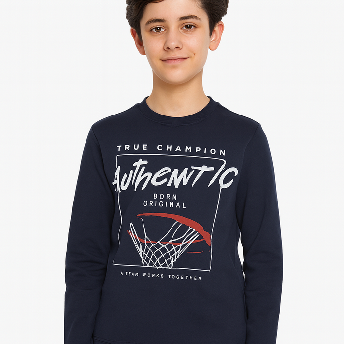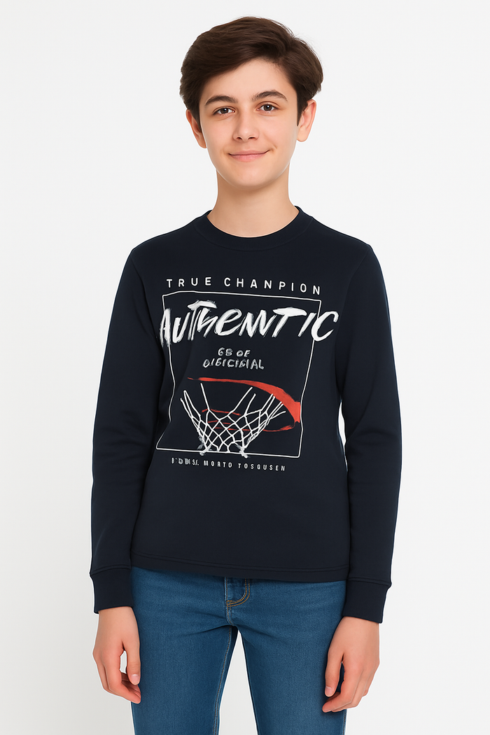 Cotton long sleeve t-shirt for boys aged 8 to 16 years, featuring a bold basketball-themed placement print. Designed for comfort with a crew neck and breathable cotton fabric.