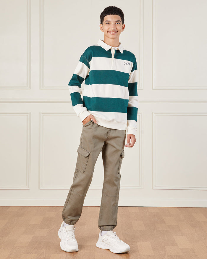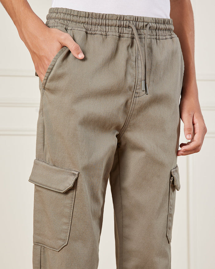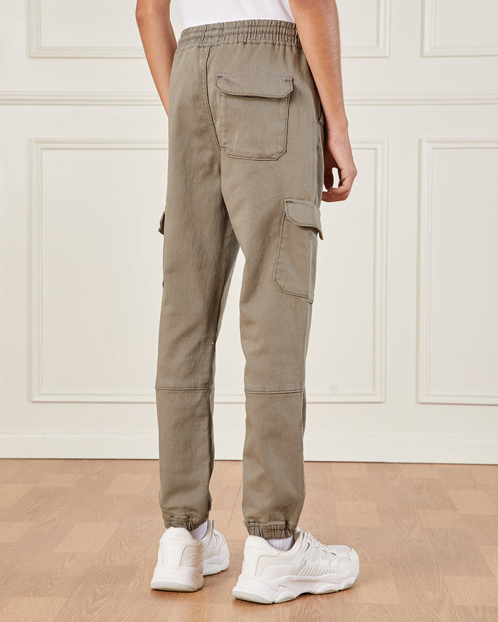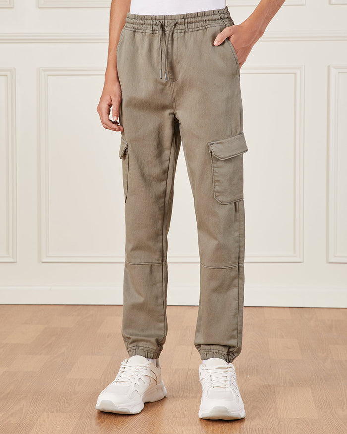 Senior Boys Olive Denim Cargo Jogger Jeans