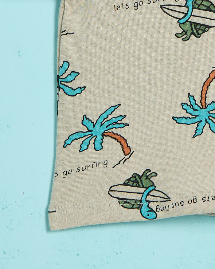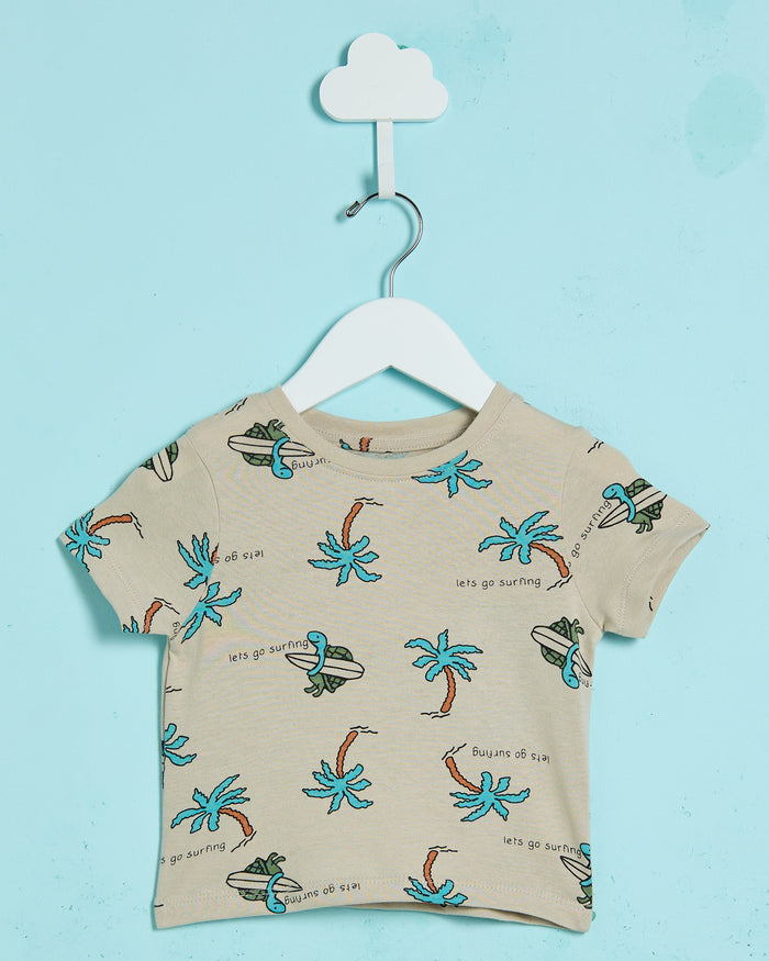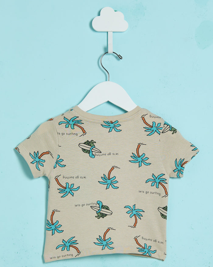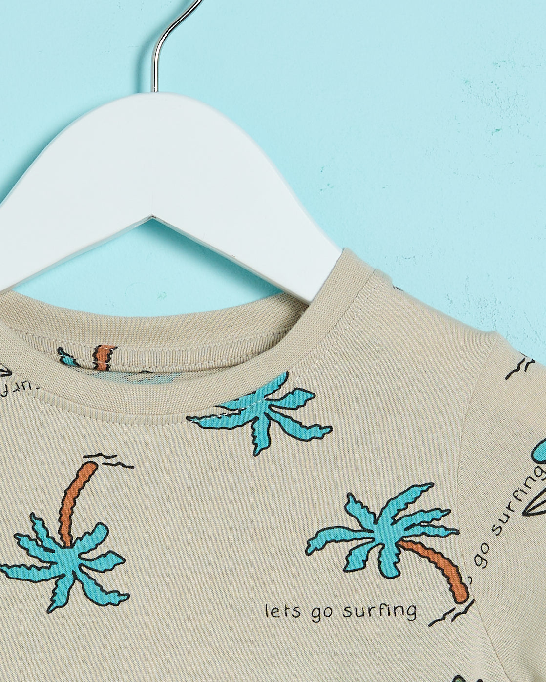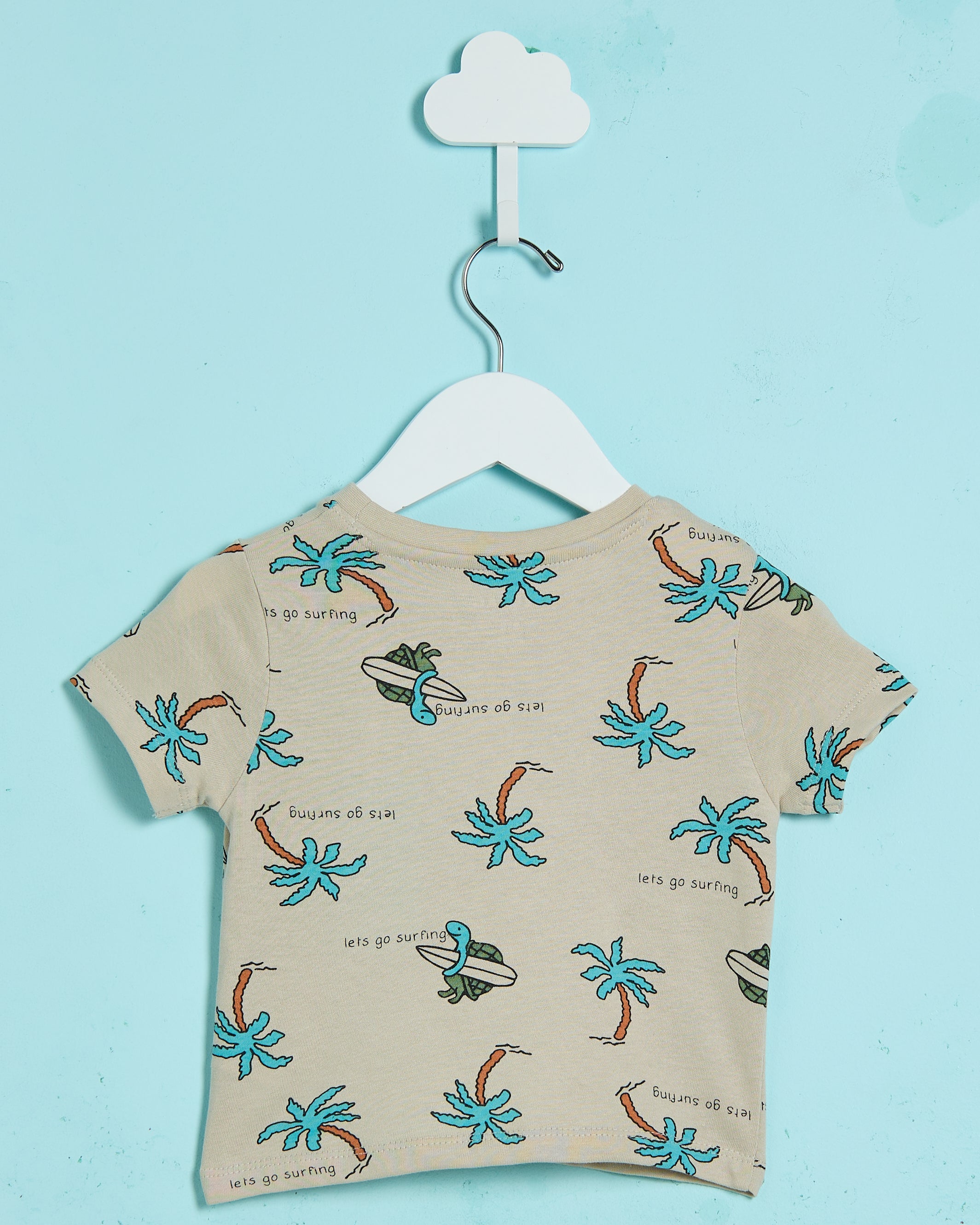 This fun beach-themed T-shirt is perfect for your little explorer. Made from soft and breathable 190 GSM cotton, it features an allover tropical print with a comfy crew neck and short sleeves. Ideal for summer days.