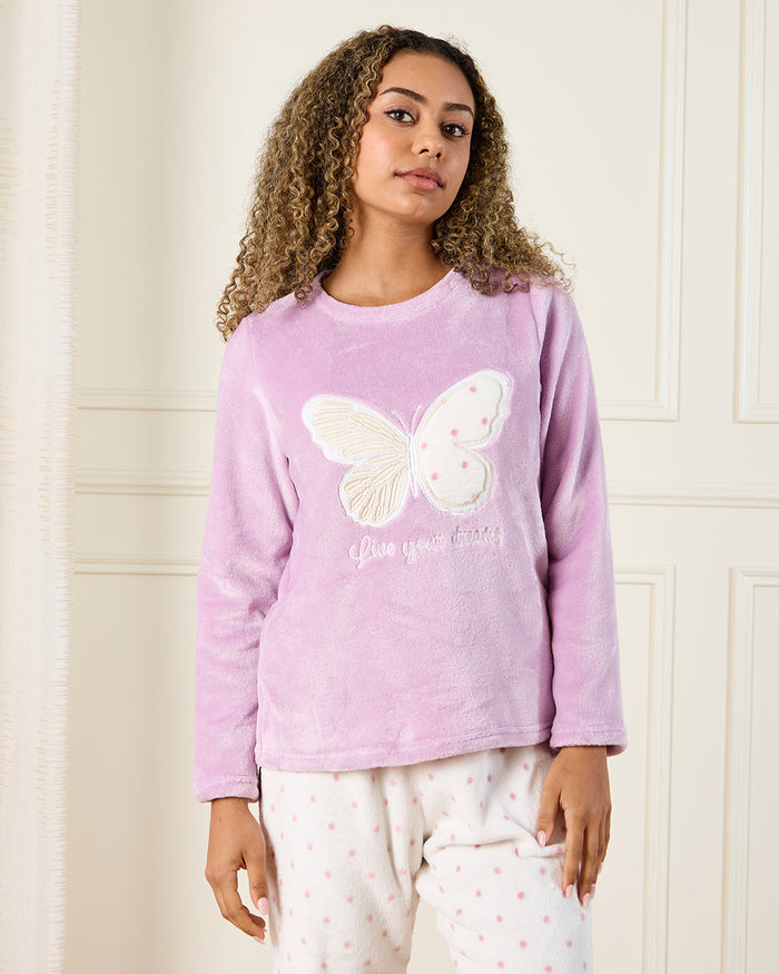 Senior Girls Purple And Ivory Butterfly Pyjama Set (2 Piece)