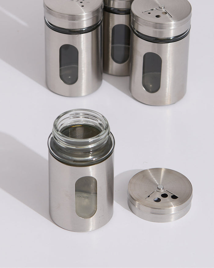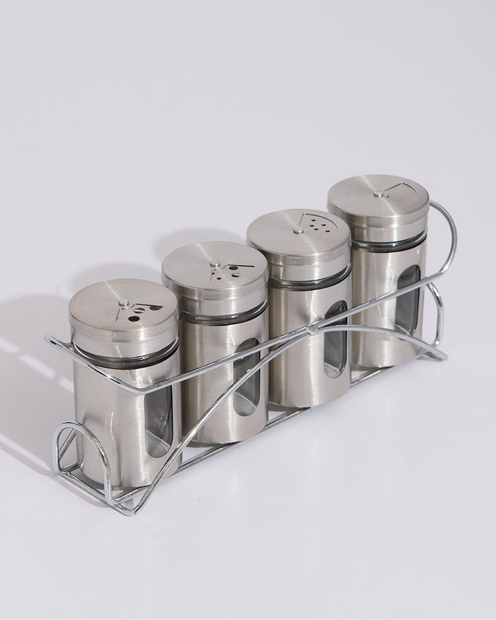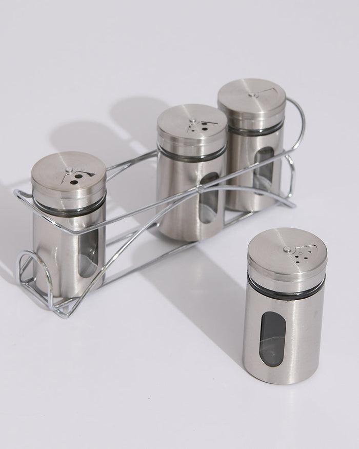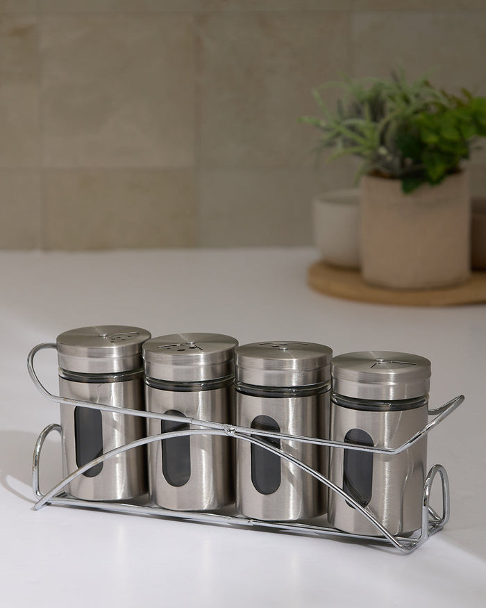 Keep your kitchen neat and your spices fresh with this 4-piece spice jar set. Designed with sleek stainless steel and clear viewing windows, it helps you identify contents easily while adding a modern touch to your countertop. The compact rack keeps everything in place and within easy reach while cooking.