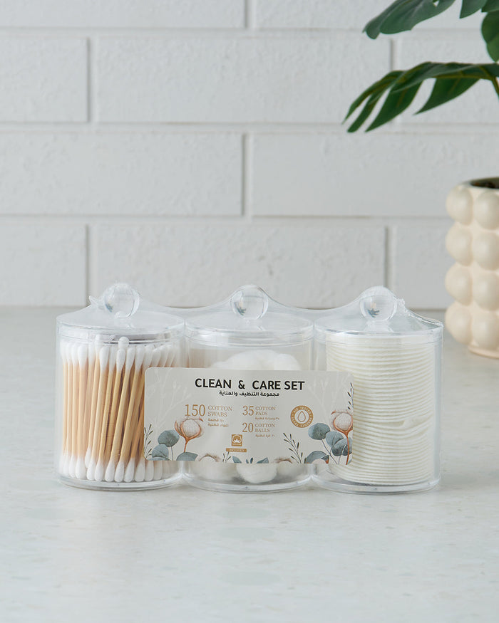 Keep your daily routine neat and hygienic with this Clean & Care Set. Includes 150 cotton swabs, 35 cotton pads, and 20 cotton balls, all neatly packed in a clear, reusable organiser. Perfect for makeup, skincare, and everyday grooming.