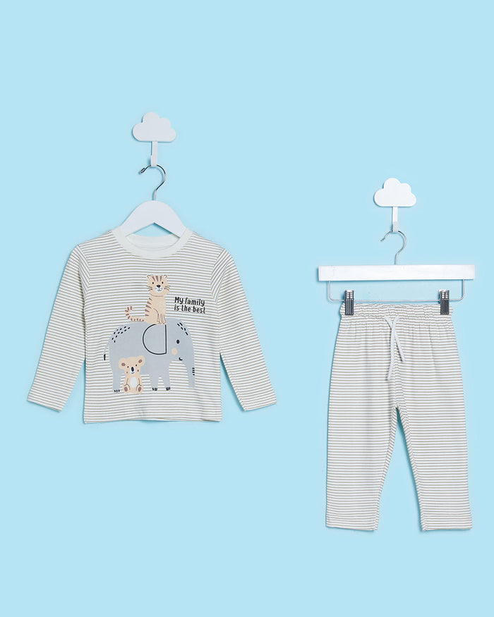 Infant Boys White Striped Pyjama Set (2 Piece)