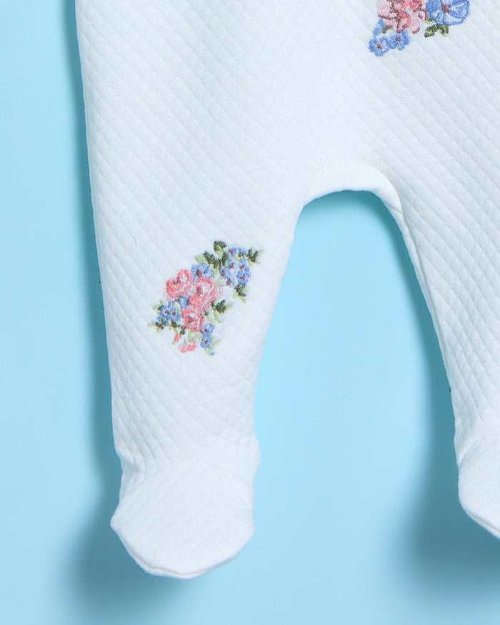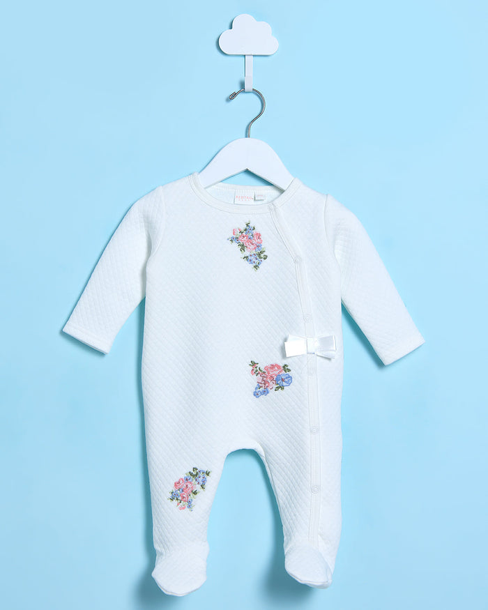 Baby White Jacquard Quilt Sleepsuit