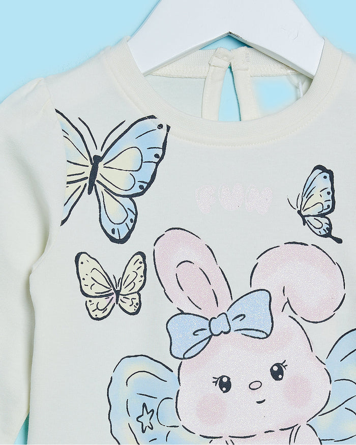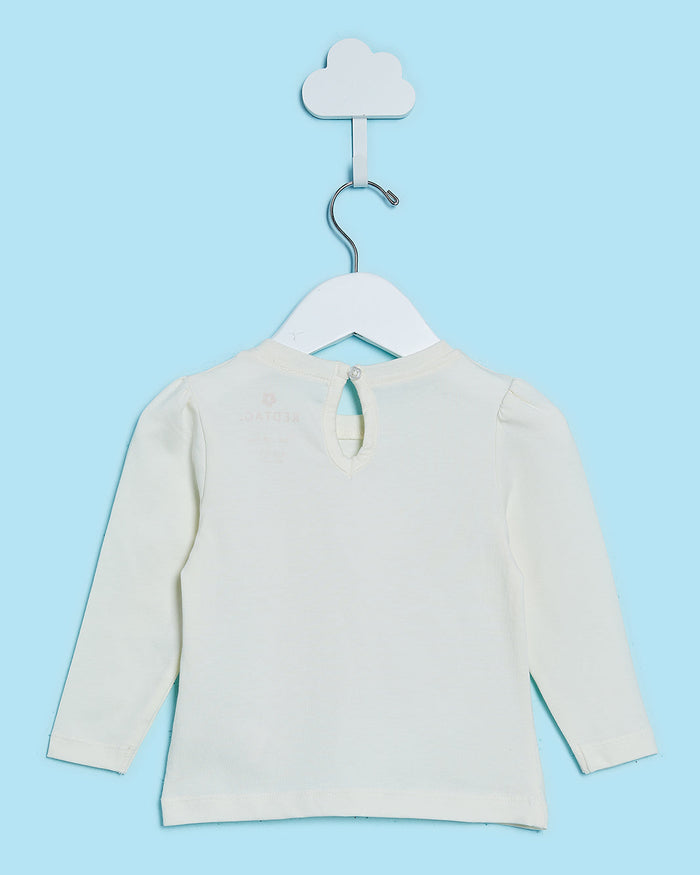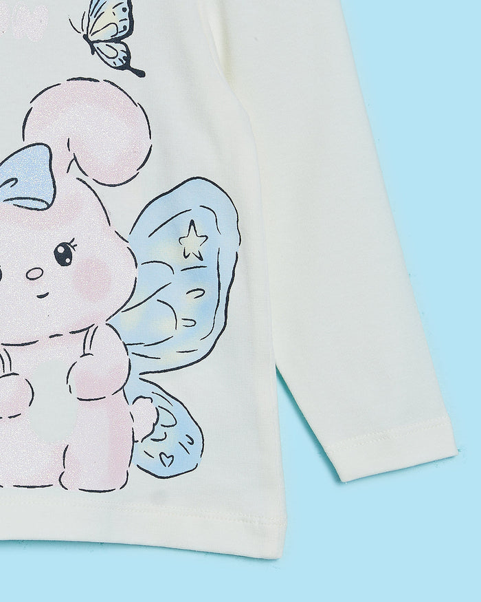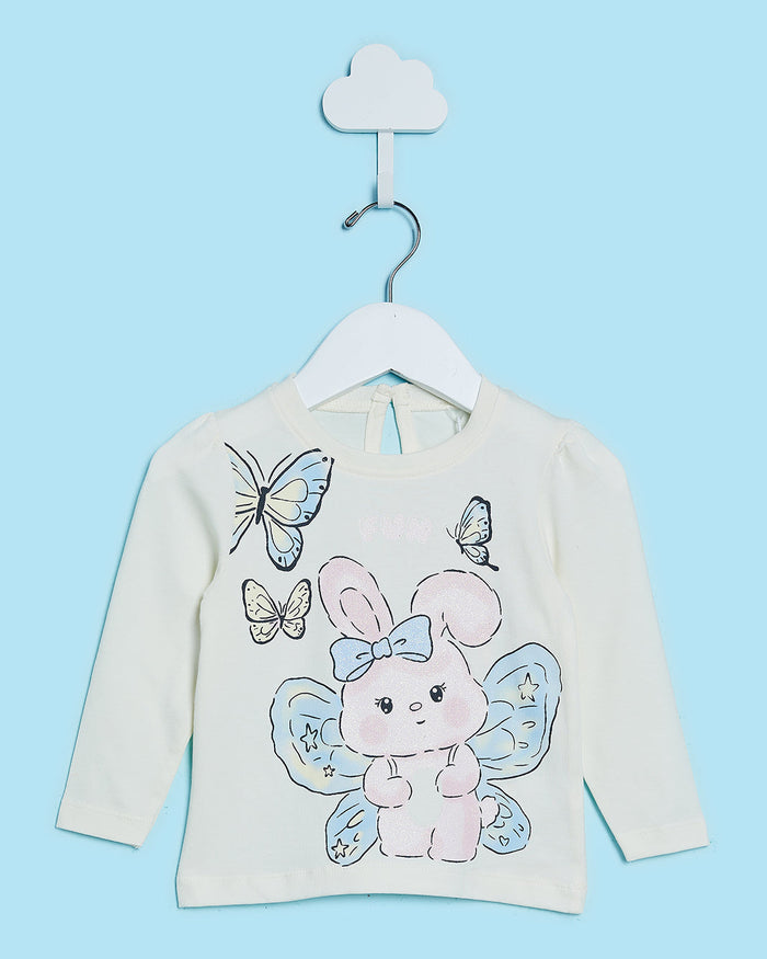 Infant Girls White Cute Bunny Placement Print Long Sleeves T-Shirt