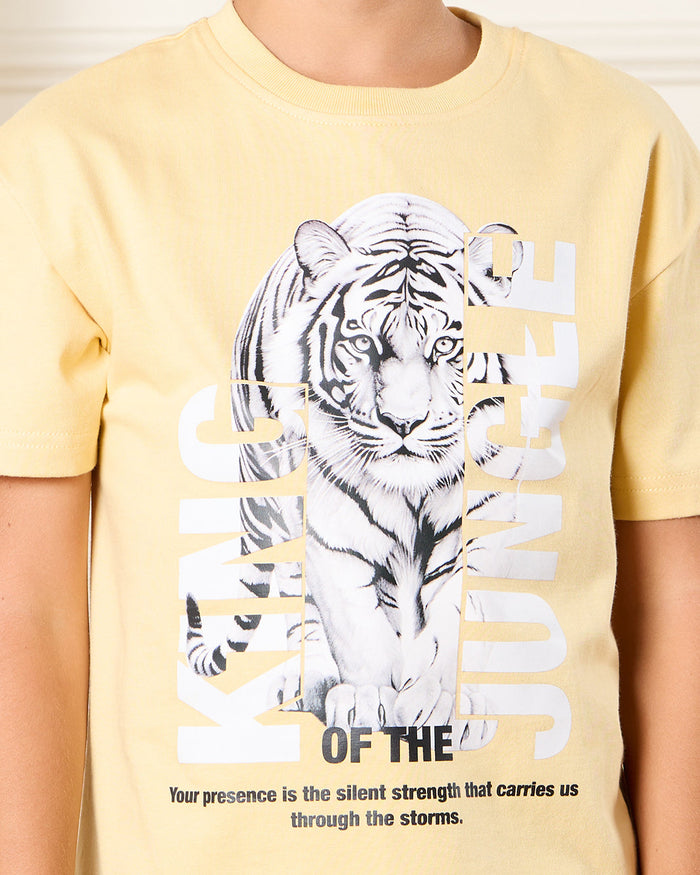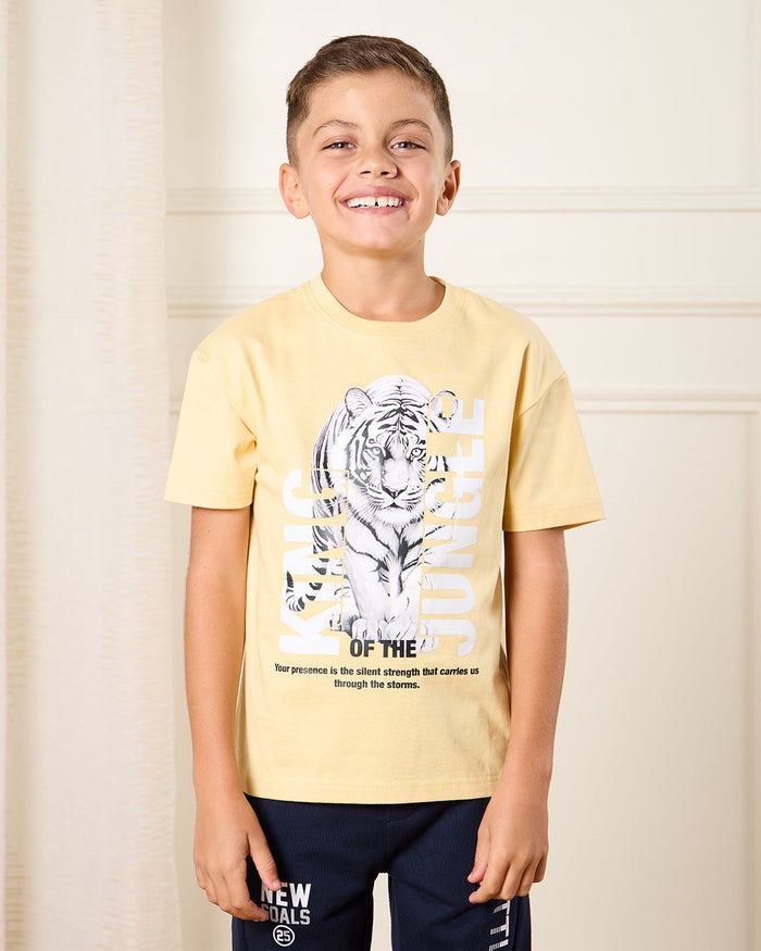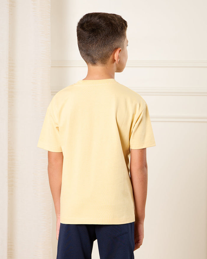 Boys Yellow Printed Loose Fit T-Shirt